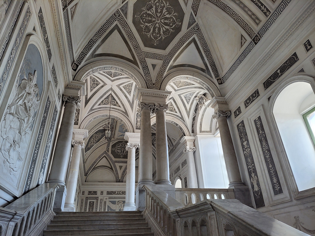 근데 이 성당 주변에는 성직자는 보이지 않고 학생 차림의 젊은이들이 지나다니는 모습이 유독 많이 보였다. 지나가는 여학생을 붙잡고 물어보니 여기가 카타니아대학교 인문사회 캠퍼스란다. 그러고 보니 학생들은 상당히 고풍스럽고 운치 있는 장소에서 대학 생활을 보내는 듯했다. 캠퍼스 입구와 마당엔 고대 로마 시절의 목욕탕 유적이 있고, 건물 안으로 들어서면 바로크 풍의 화려한 장식이 계단과 복도 천장을 뒤덮고 있었다. 옛 수도원 풍의 건물 한가운데에는 사각형 뜰이 있고, 그 주변을 회랑이 둘러싸고 있는데, 학생들은 뜰을 내다보면서 각자 편안한 자세로 공부에 몰두하고 있었다. 학생들과 부대끼던 시절의 기억이 문득 새록새록 떠올랐다. 복도를 지나다가 문이 열린 대형강의실이 있어 흘낏 들여다보니 강의실 천정에는 커다란 프레스코화가 방 전체를 굽어보고 있었다.