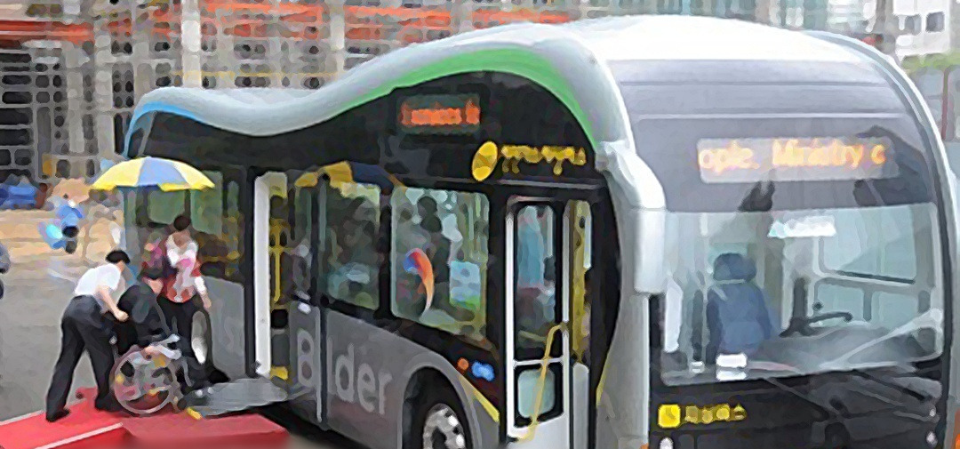 버스정류장에서 저상버스를 기다렸다.