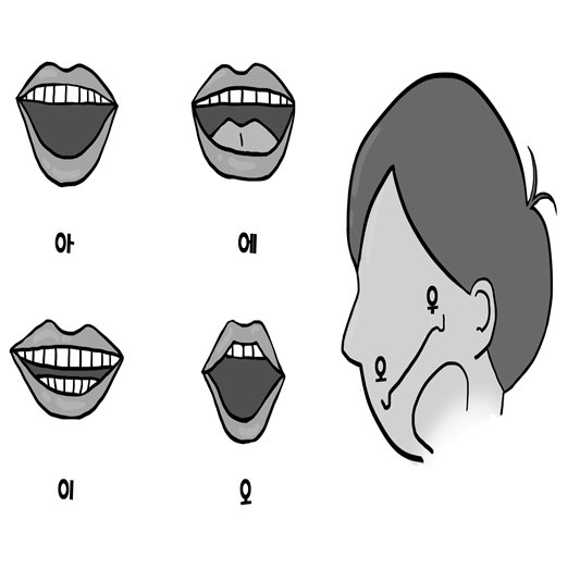 〃발음의 입술위치로 ㅏ”, ㅓ”, ㅔ” 등의 발음을 해도 (입이 아주 좁아도) 발음에 문제가 되지 않는다.