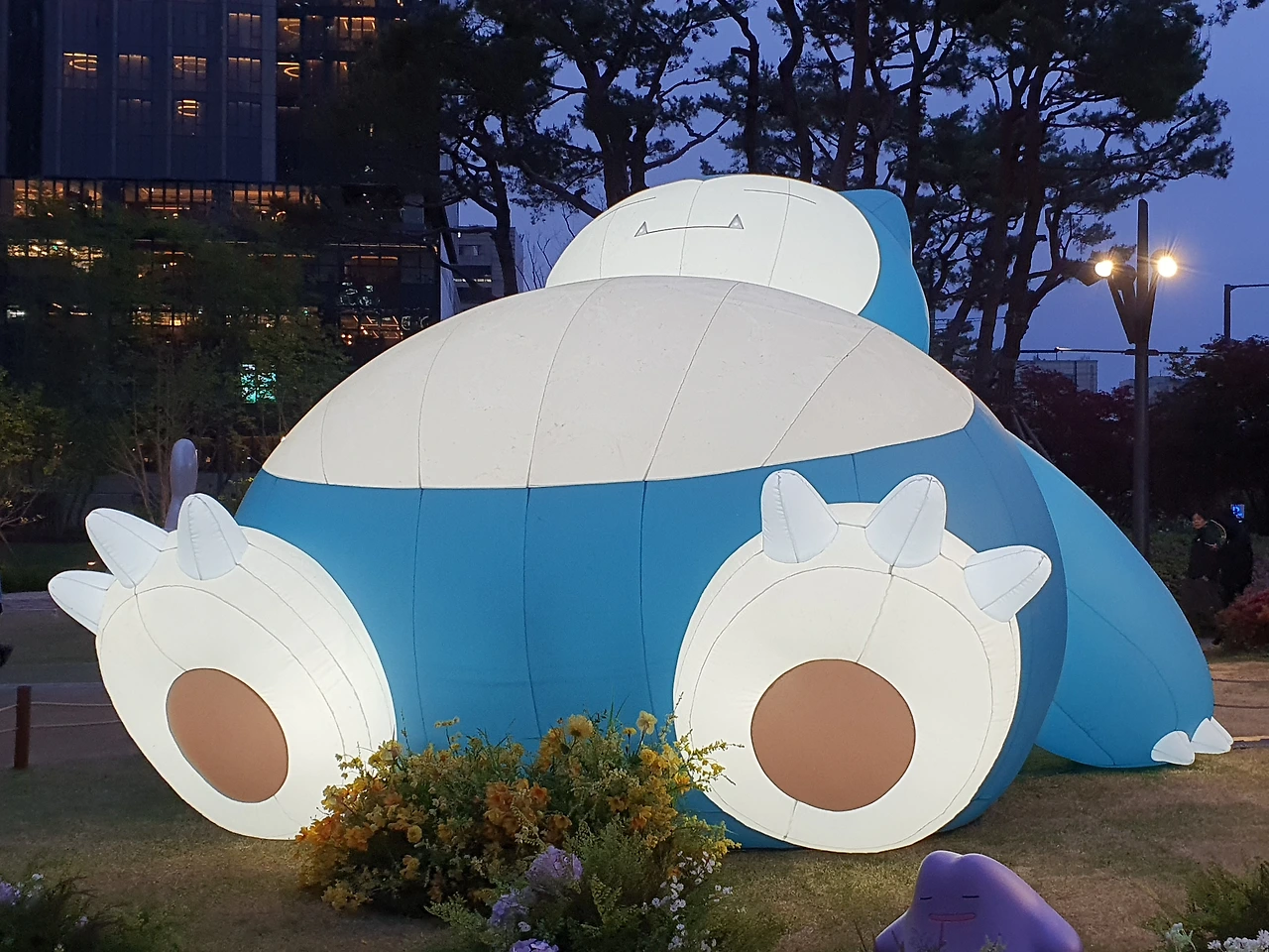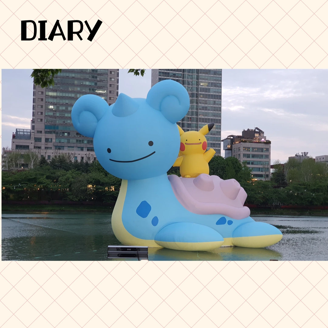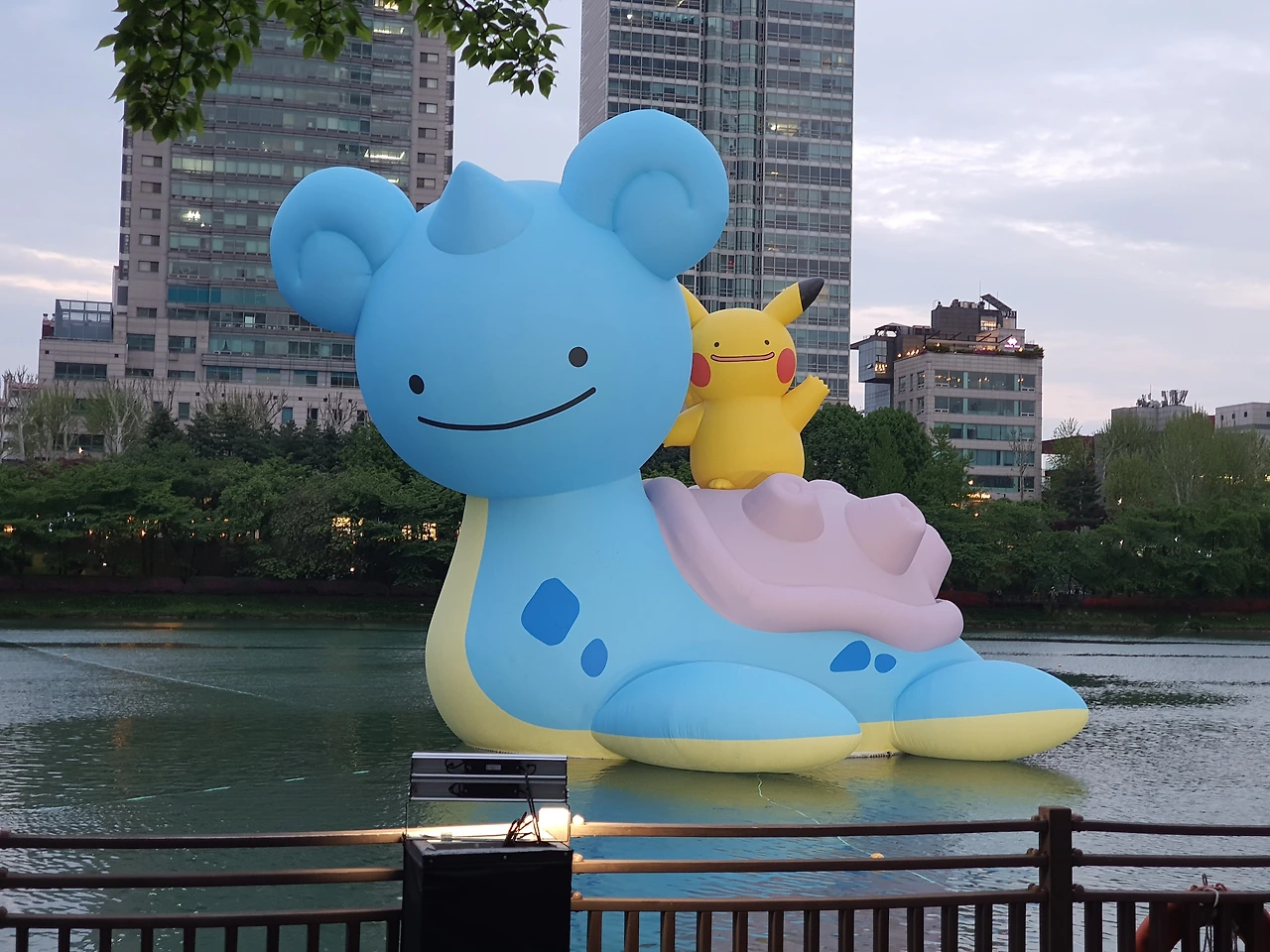 3. 석촌호수에는 16m 높이의 ‘변신! 메타몽: 라프라스&피카츄’ 초대형 벌룬이 전시되어, 2024년의 라프라스&피카츄와 대비되는 재미를 준다.