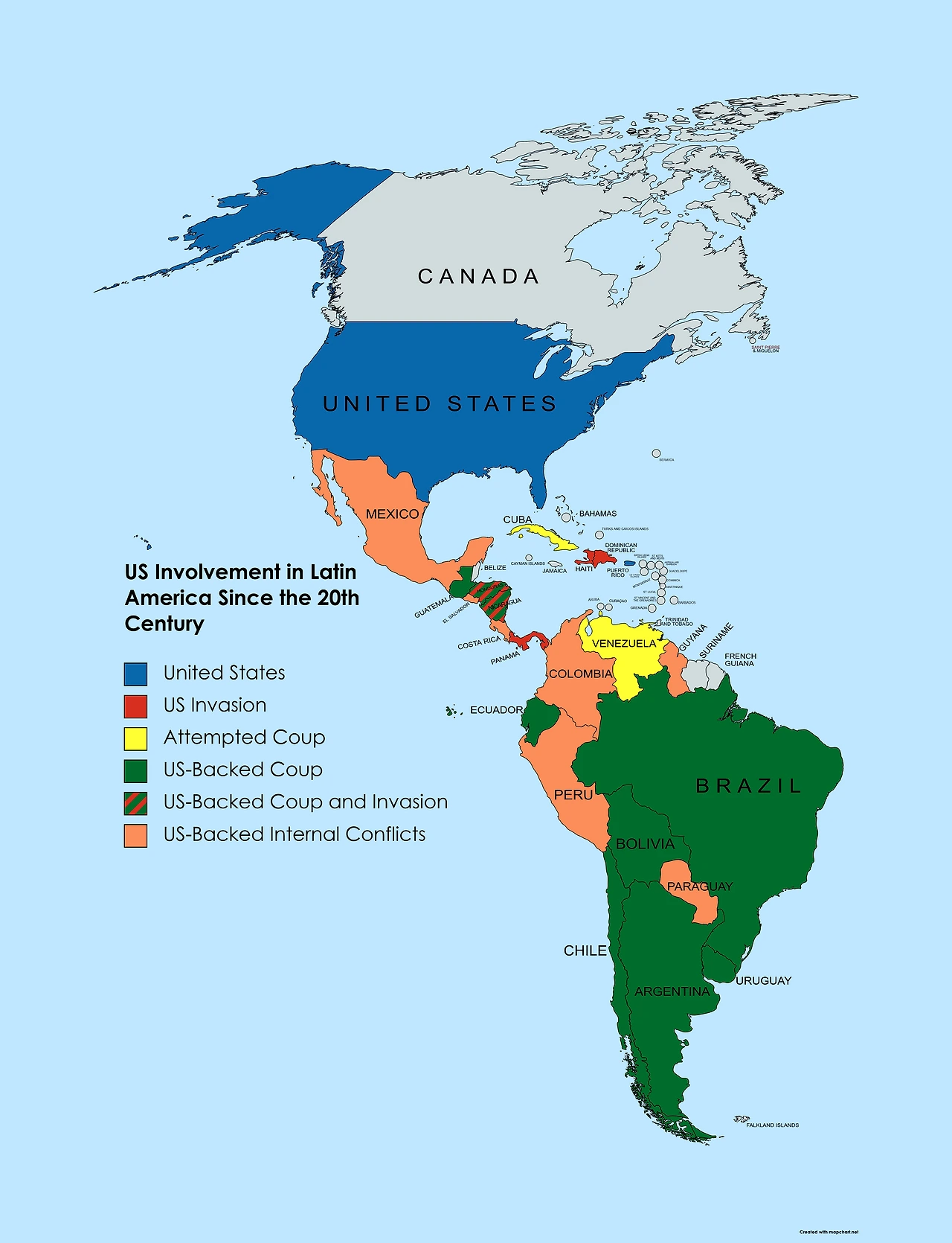 파나마(1989): 미군이 직접 침공(Just Cause)하여 마약 밀매 혐의로 노리에가 대통령을 체포했습니다. 직접적인 군사력이 동원된 사례입니다.