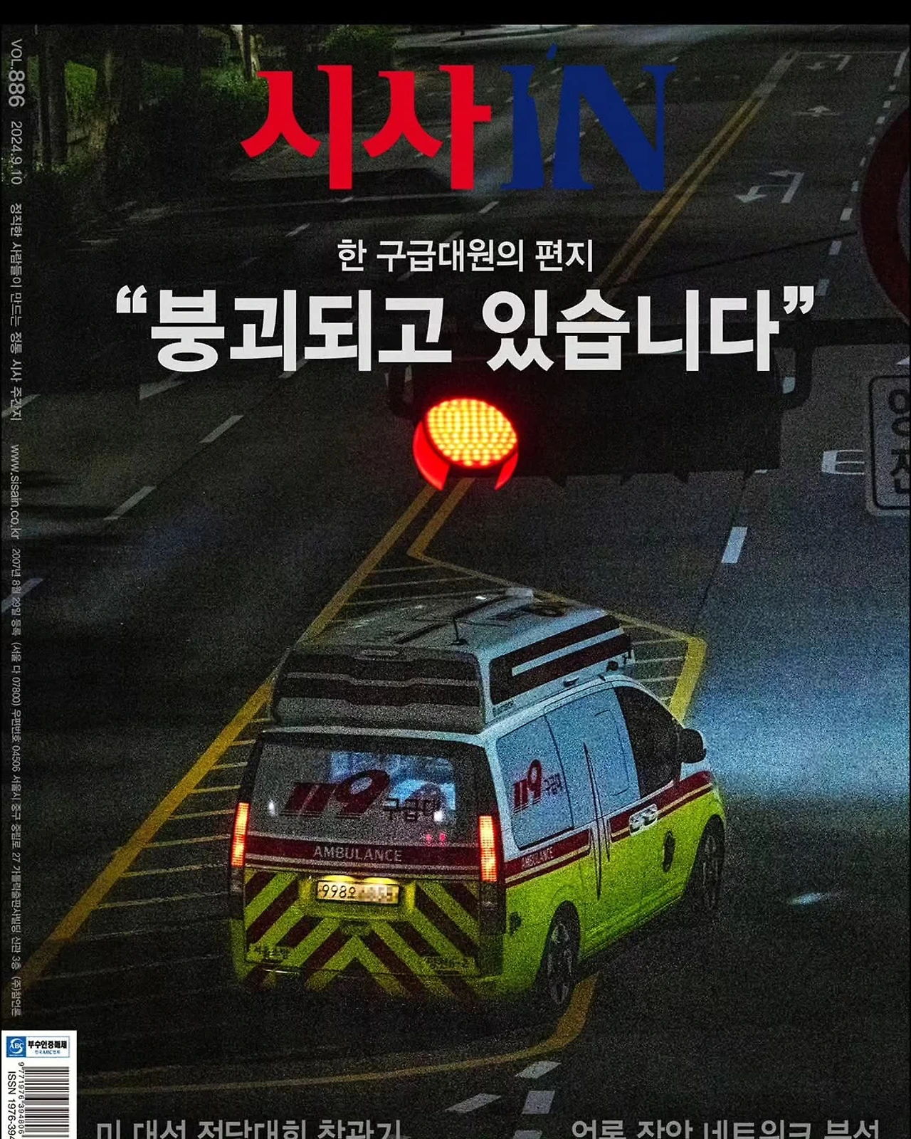 메일을 보낼 때 내가 쓴 글이 기사에 일부 인용될 수도 있겠다는 막연한 예감이 없었던 건 아니었지만, 이렇게 전격적으로 기고문의 형태로 수용되는 것은 예상하지 못했다. 심지어 내가 쓴 글은 표지 기사가 되었다. 잡지의 소제목은 <한 구급대원의 편지 “붕괴되고 있습니다”>이다. 이번 주 월요일부터 전국의 모든 서점의 주간지 판매대에는 내가 쓴 글이 진열되었고, 심지어 김대중 전대통령의 비서실장이었던 박지원 의원이 내 글의 제목 위에 친필 사인을 해서 독자 이벤트를 하는 지경에 이르렀다. 이게 무슨 일인가 싶어 정신이 아득하다.