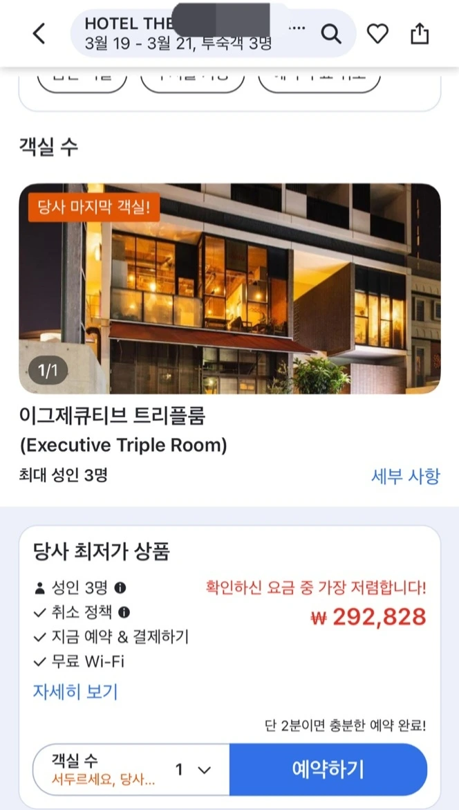 이렇게 지금까지 제가 아*다를 통해 예약한 모든 호텔들의 가격에 대한 믿음이 다 무너졌습니다.