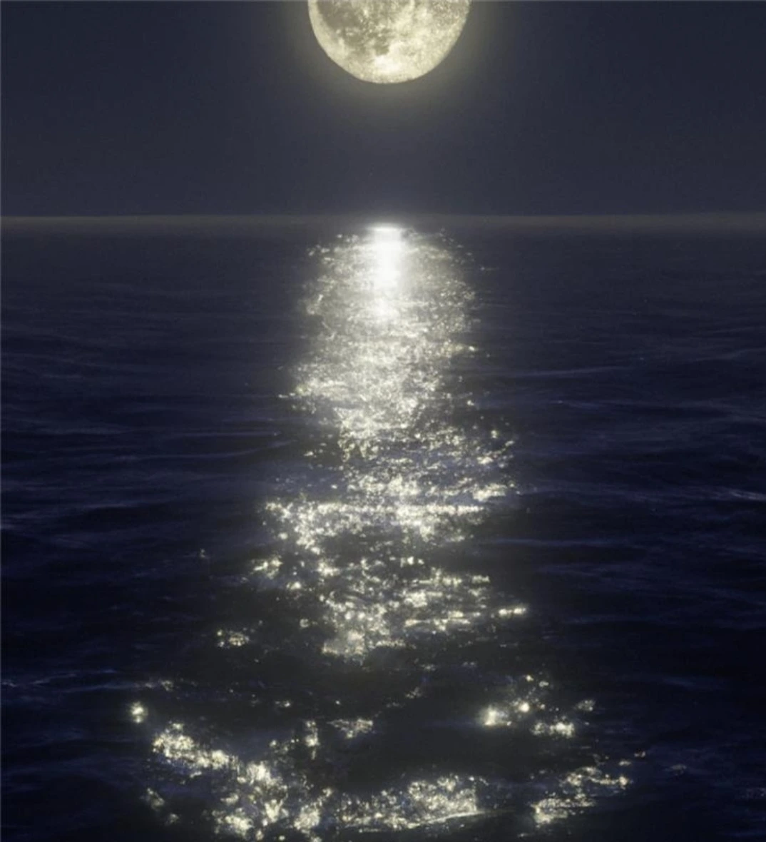 은결) 밤바다에 은은히 비치는 달빛.