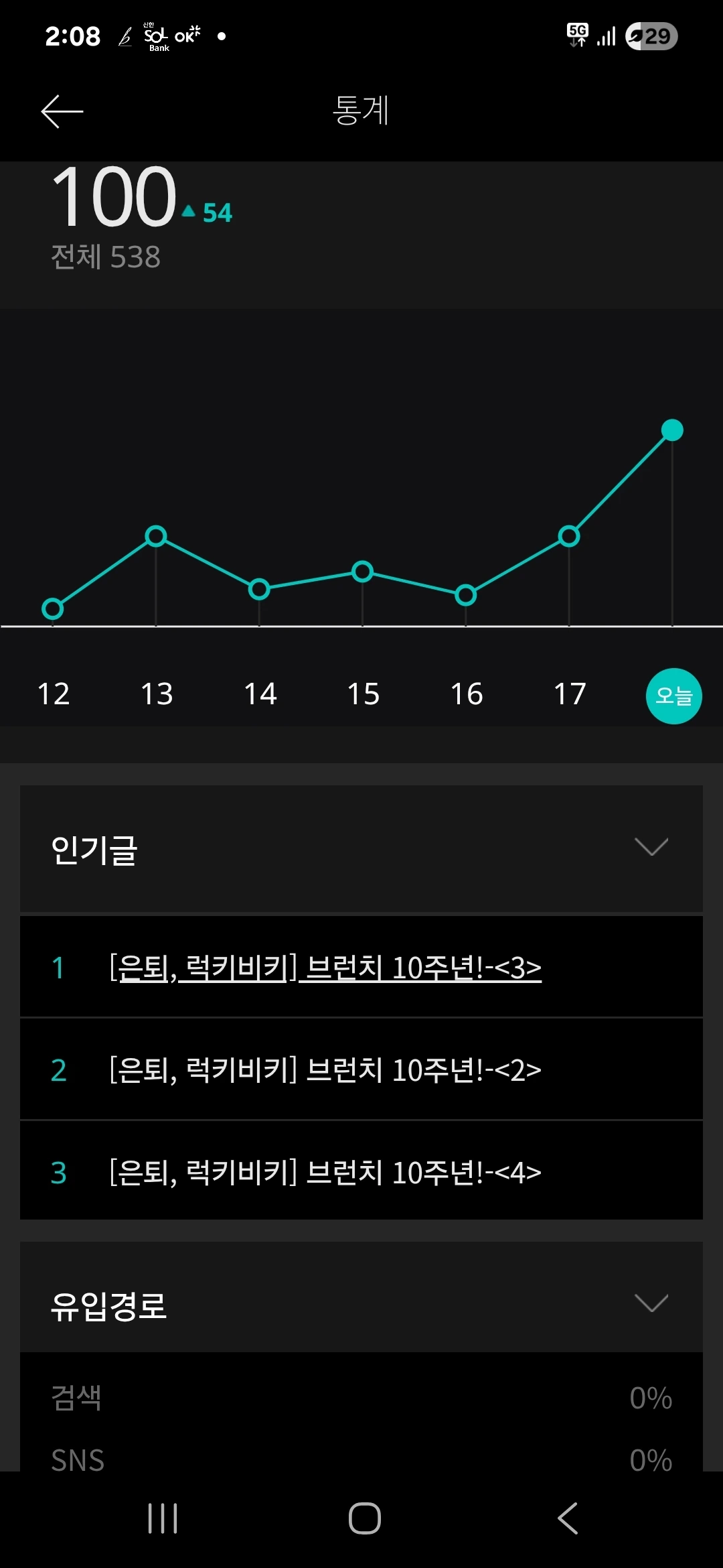 알파벳 M과 W 글자의 우측을 이탈하여 로켓과도 같은 급상승(우상향 직선)을 이루며, 오늘 오후 2시부로 조회수 100을 돌파했습니다. 짝짝짝!무지막지하면서도 동시에 공포스러울 정도로 강력한 글감의 힘을 여실히 느낄 수 있었습니다. 감사합니다. 꾸벅, 꾸꾸벅!