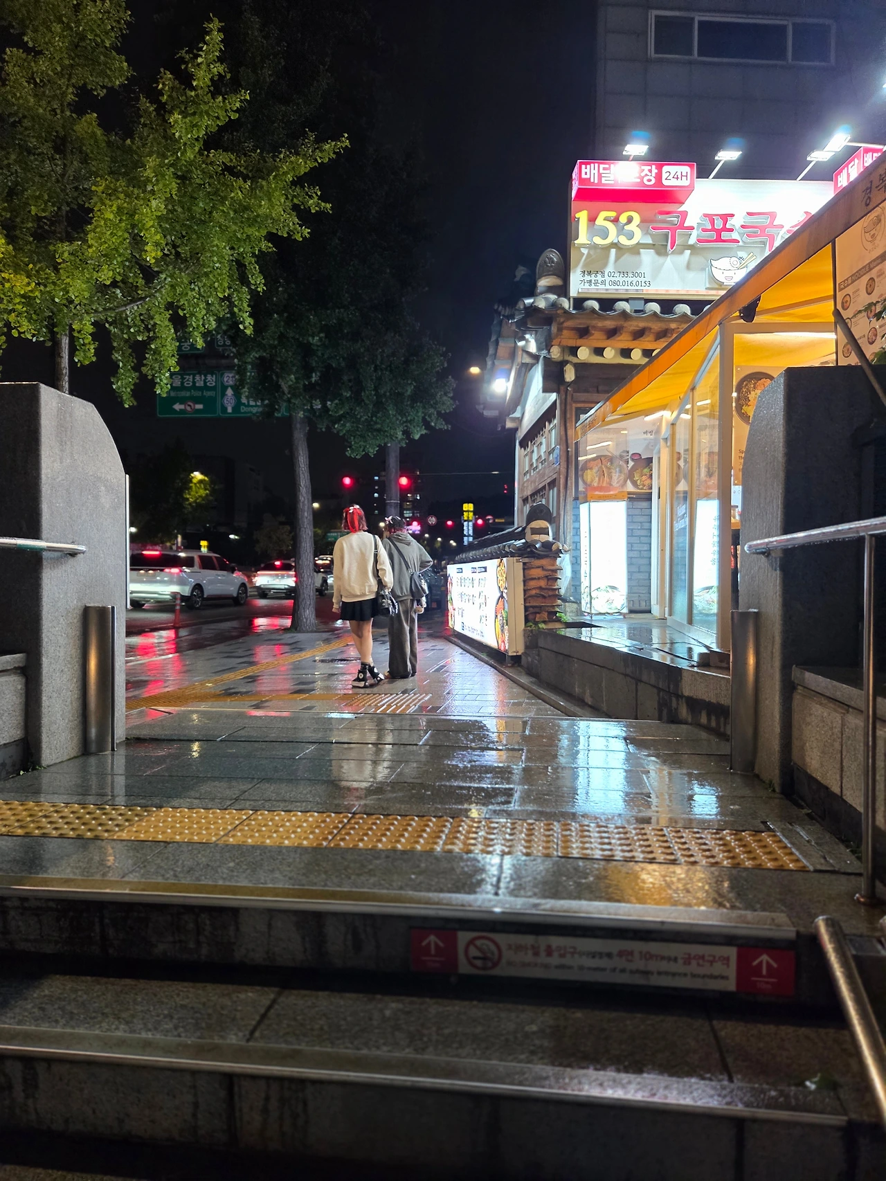 보슬보슬 비 내리는 저녁, 집으로 가는 지하철을 타기 위해 가는 길에 만난 경복궁역 입구의 외국인들도 찰칵해 본다.