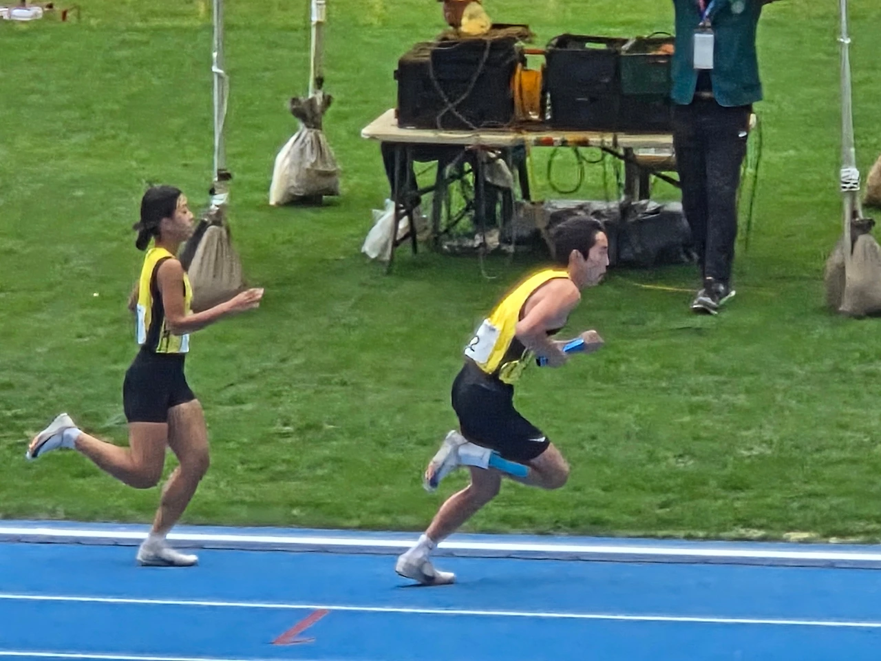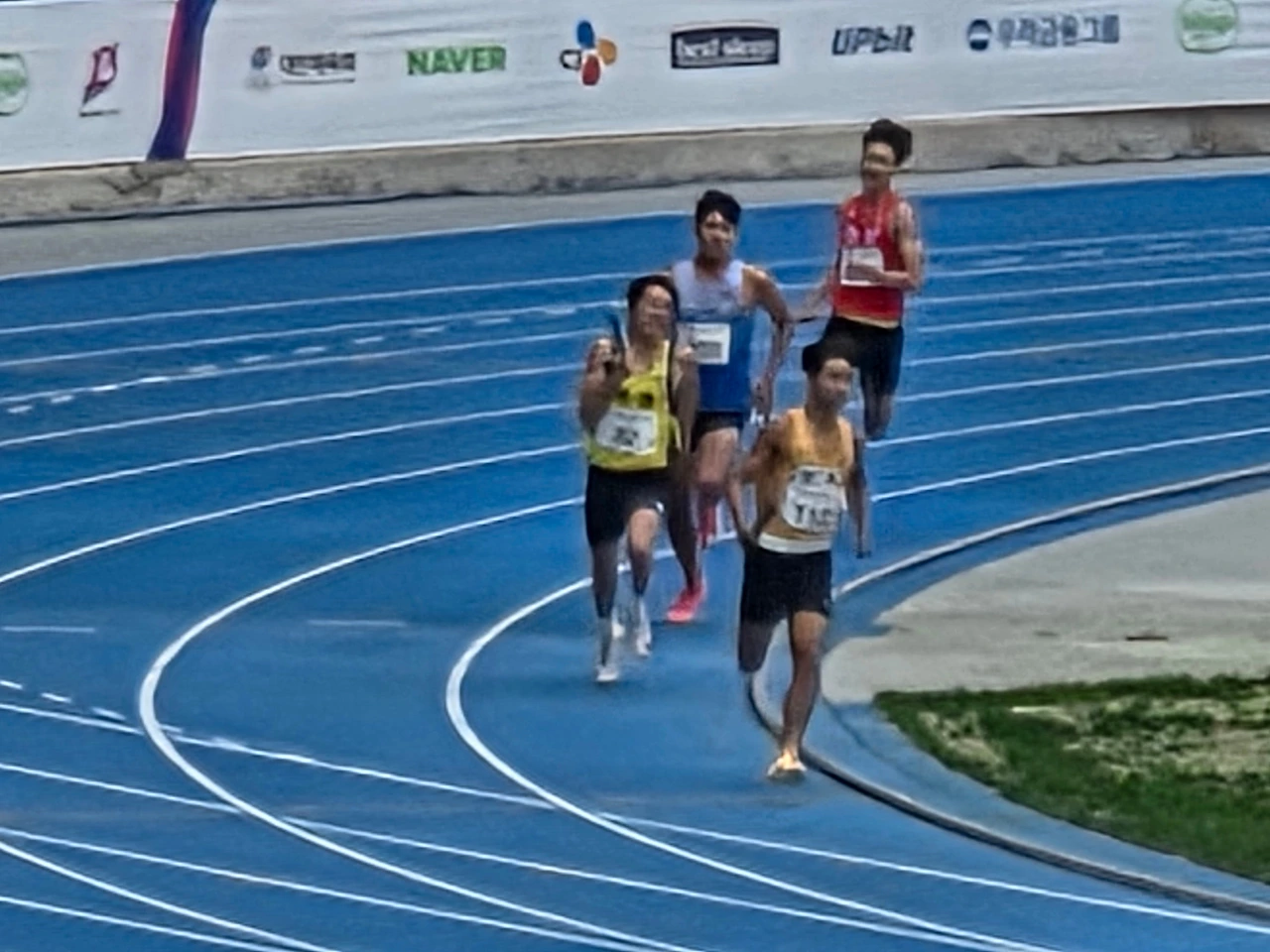 아, 아쉽게도 지금 서울 팀이 추월당하고 있네요. 네, 1등으로 바톤을 받아 최선을 다했으나, 서울 팀은 2등으로 바톤을 4번 여자선수에게 넘겨주게 되었습니다. 파죽지세의 기세를 이어받은 마지막 여자선수가 힘껏 잘 달려 최선의 결과인 2등으로 경기를 마무리했습니다. 이상 예선전 진행과정과 결과에 대해서 상세하게 전해드렸습니다.