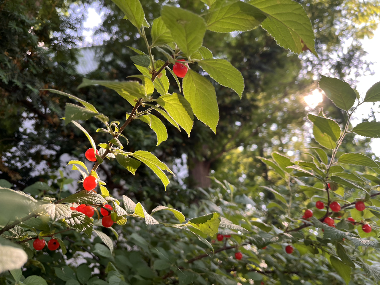 앵두나무에 앵두가 빨갛게 익어간다.