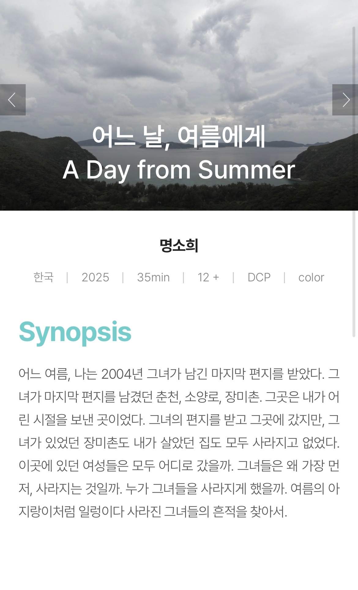 이번 상영 소식을 듣고 특히나 더 기뻤던 이유는, 7년 만의 새 작업을 완성했고, 그 작품의 상영이었기 때문이다.