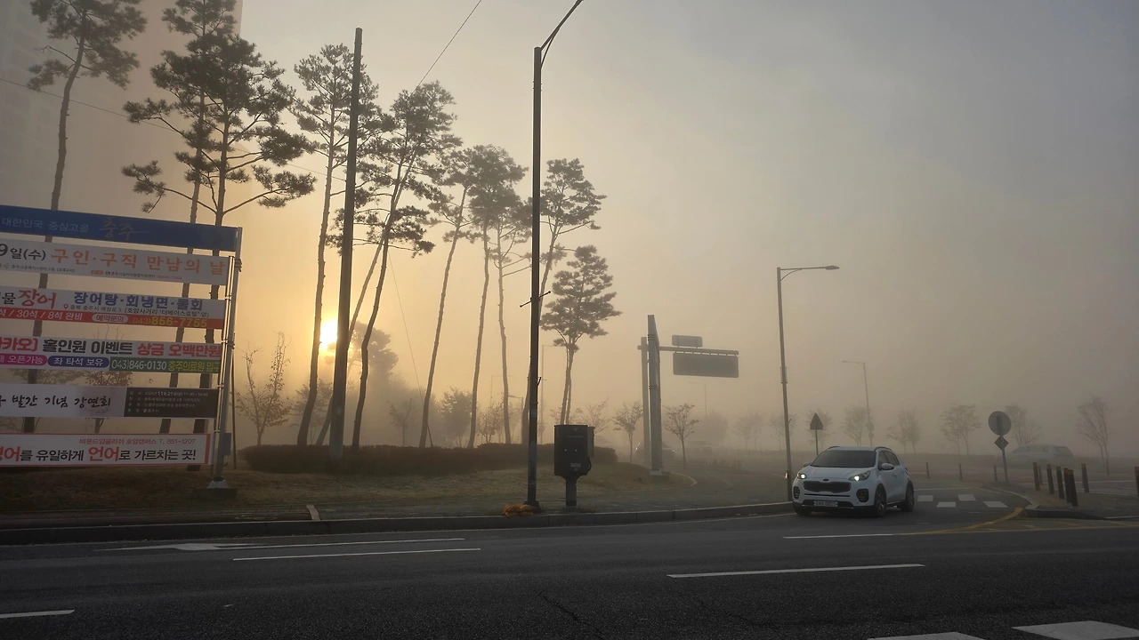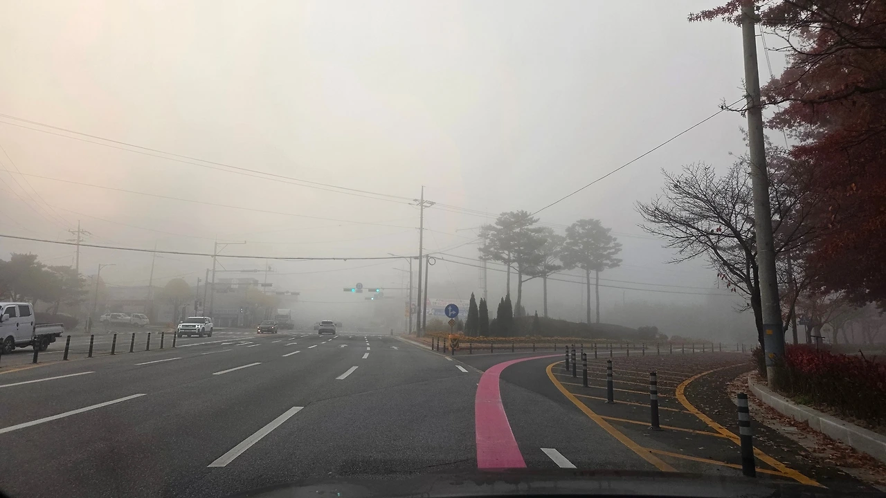 6시에 출발하기로 해놓고 날이 춥다는 핑계로 한 시간을 더 잤다. 현재 영하 1도. 해가 떠야 그나마 온도가 오를 텐데. 더 이상 지체할 수 없어 나름대로 중무장을 하고 길을 나선다. 도로에 안개가 잔뜩 끼었다. 아들 녀석이 걱정스러운 표정을 짓길래 해 뜨면 다 사라질 거라고 얘기하면서도 나 역시 오늘 제대로 된 경치를 볼 수 있을까 소심해진다.