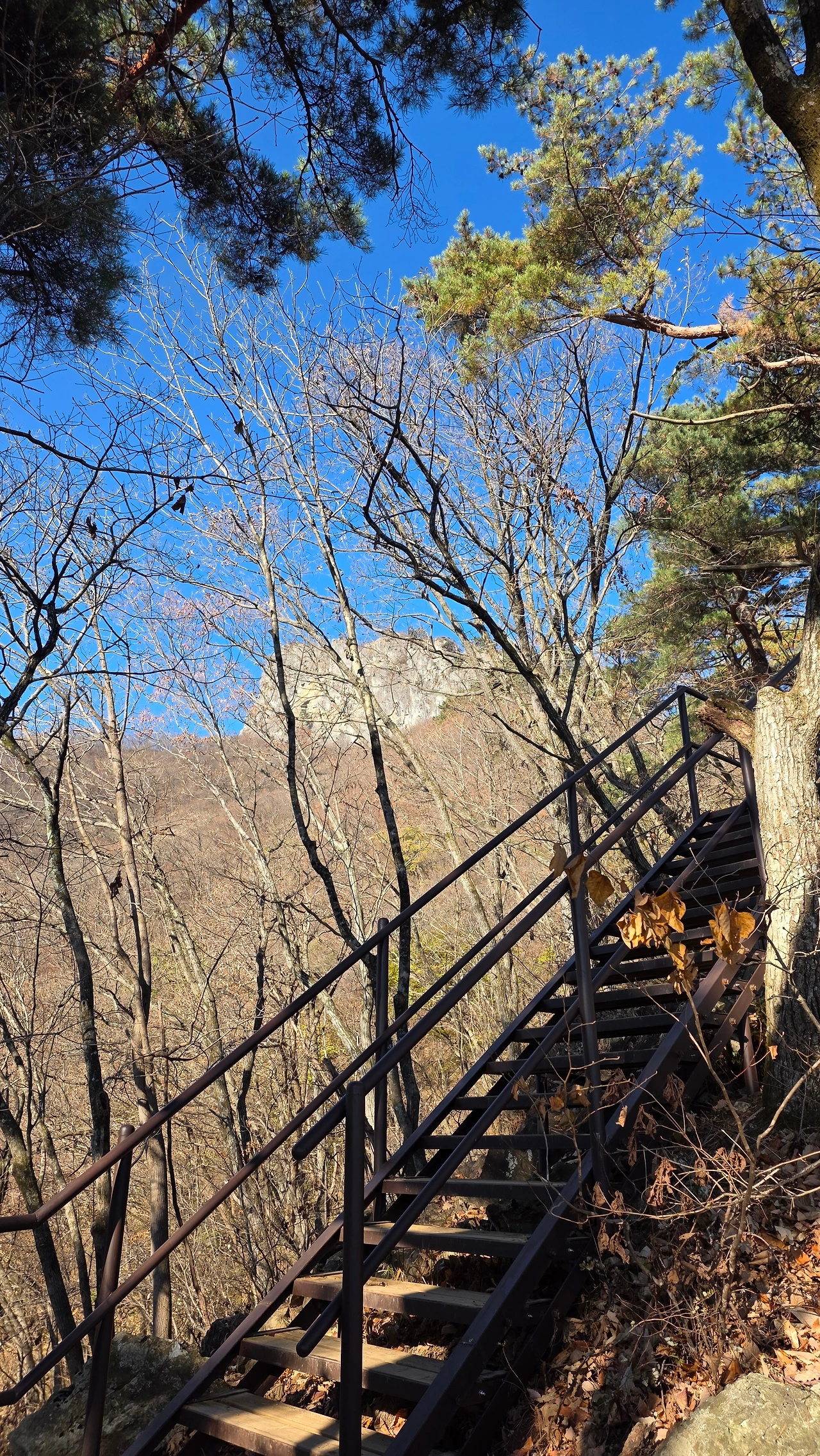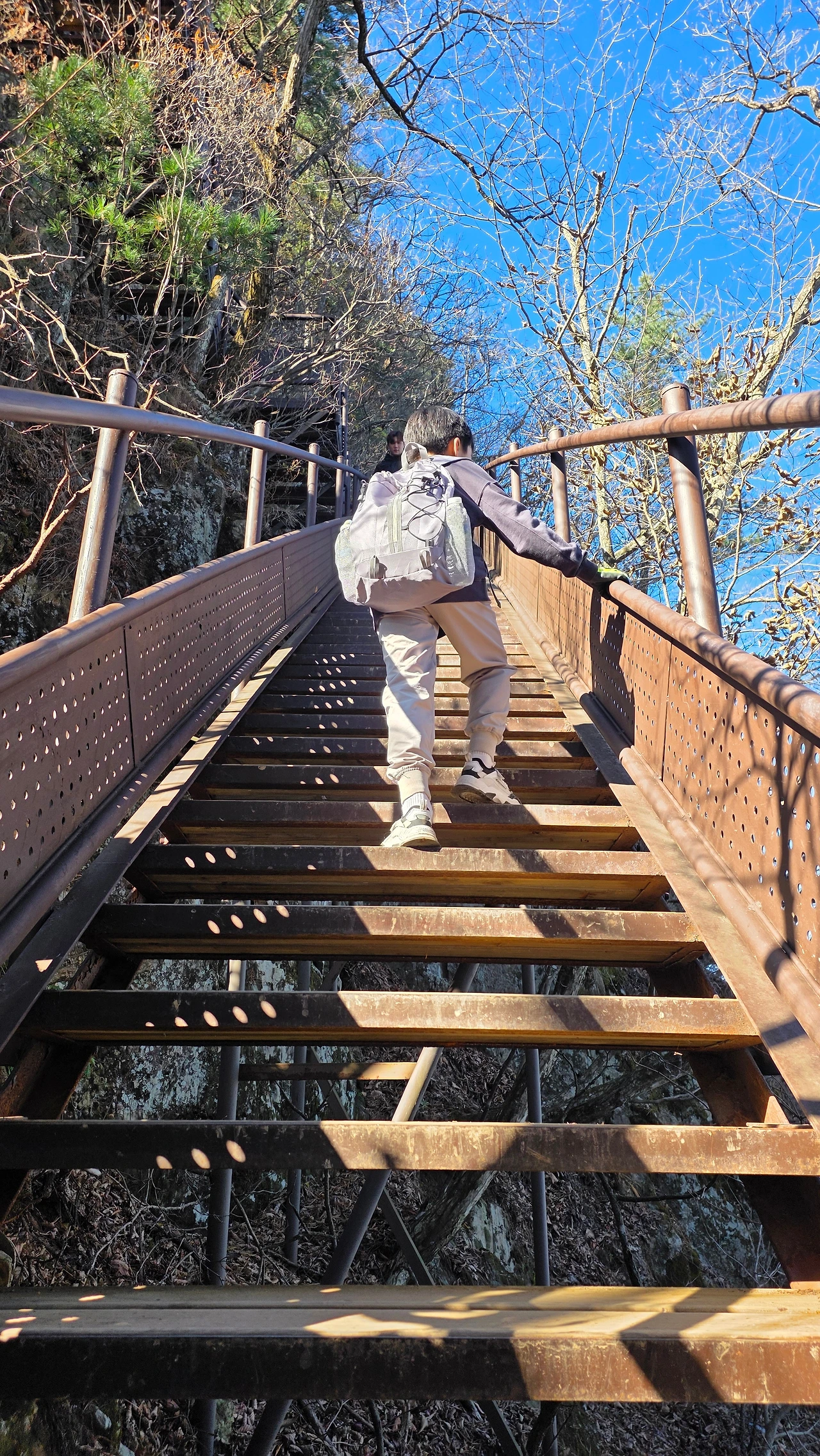 신이 난 부자가 리듬을 타며 산을 내려온다. 여유롭게 난간에 기대 사진도 찍고, 올라오는 이들을 향해 우리가 받았던 것처럼 먼저 인사를 건네 본다.