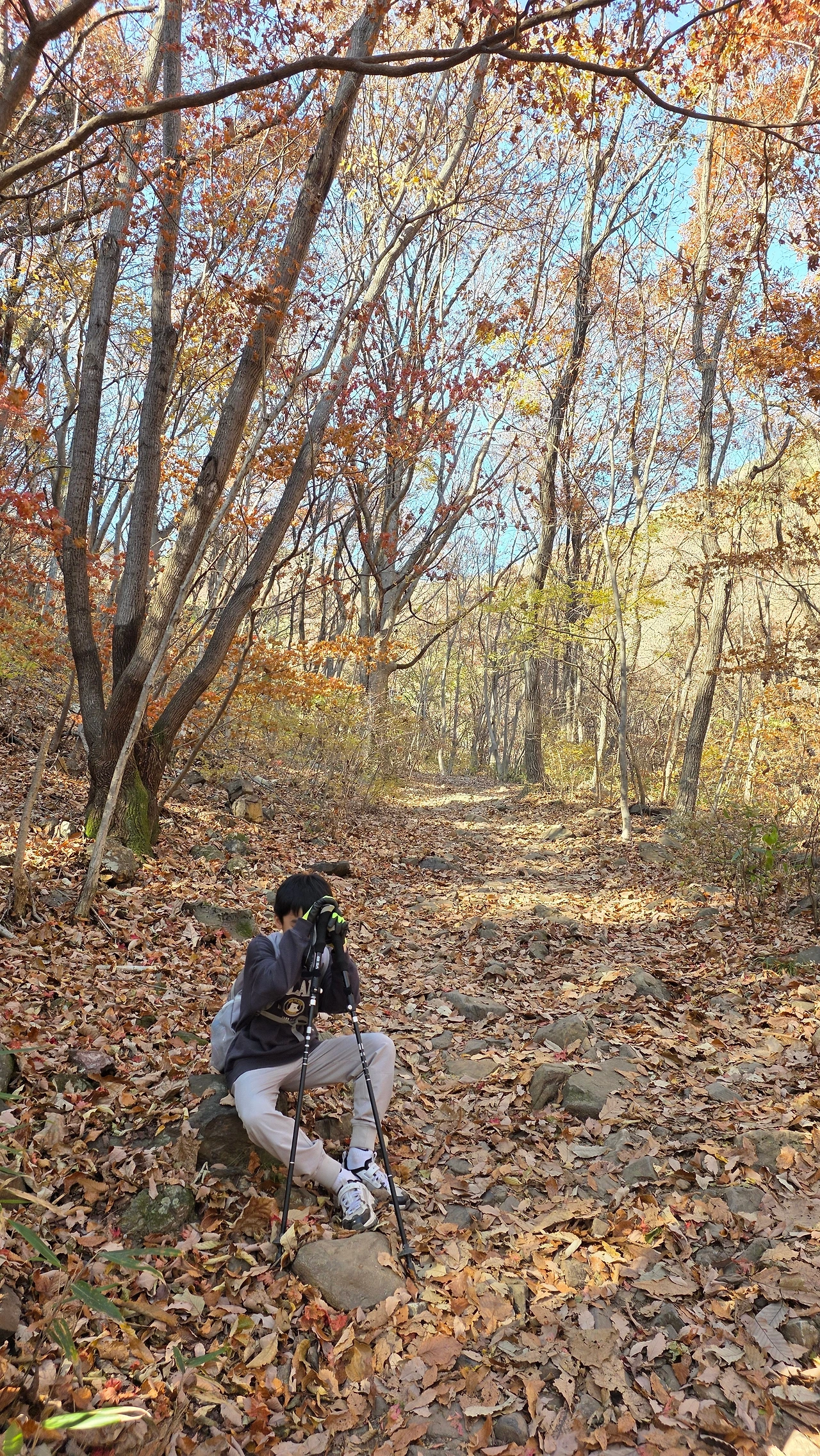 덥다. 방금 전까지만 해도 추웠는데... 이게 뭔가. 땀이 흐른다. 장착된 아이템을 하나씩 벗어젖힌다. 귀마개, 바람막이, 니트... 결국 반팔이다. 연신 수건으로 이마를 훔친다. 오르막이 심한 데다 길도 좁아 뒤따르는 아이에게 스틱으로 땅을 짚으며 외친다. "여기 밟고, 여기 잡고, 여기 밟고 올라와!" 제대로 알아들었는지 모르겠으나 곧잘 따라오는 걸 보니 참 대견하다. 언제 이렇게 컸을까.
