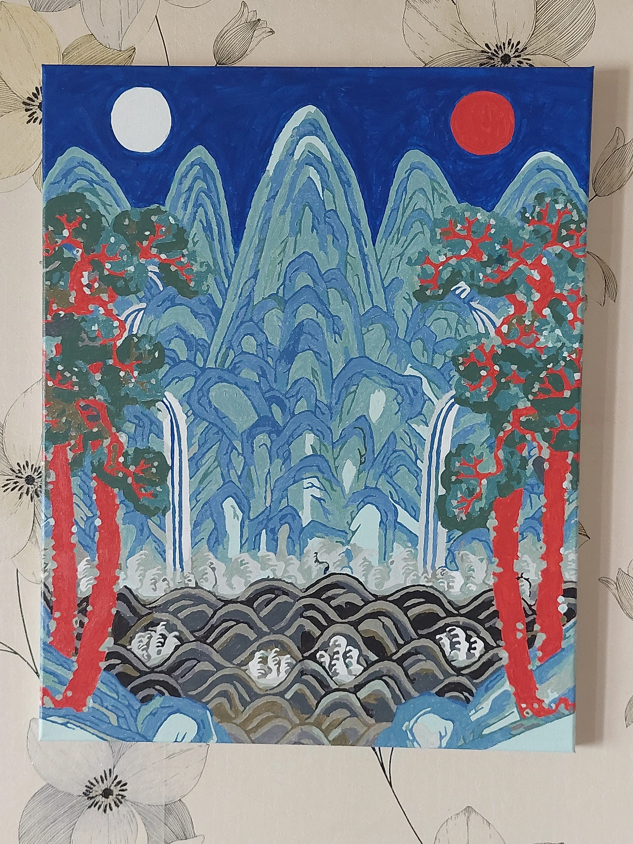 일월오봉도는 브런치작가이신 몬스테라님이 올린 글에서 취미로 그리신다는 민화이야기에서 알았다. 물론 사극드라마등에서 눈에 익은 그림이지만 더 자세히 알 수 있는 기회가 되었다.