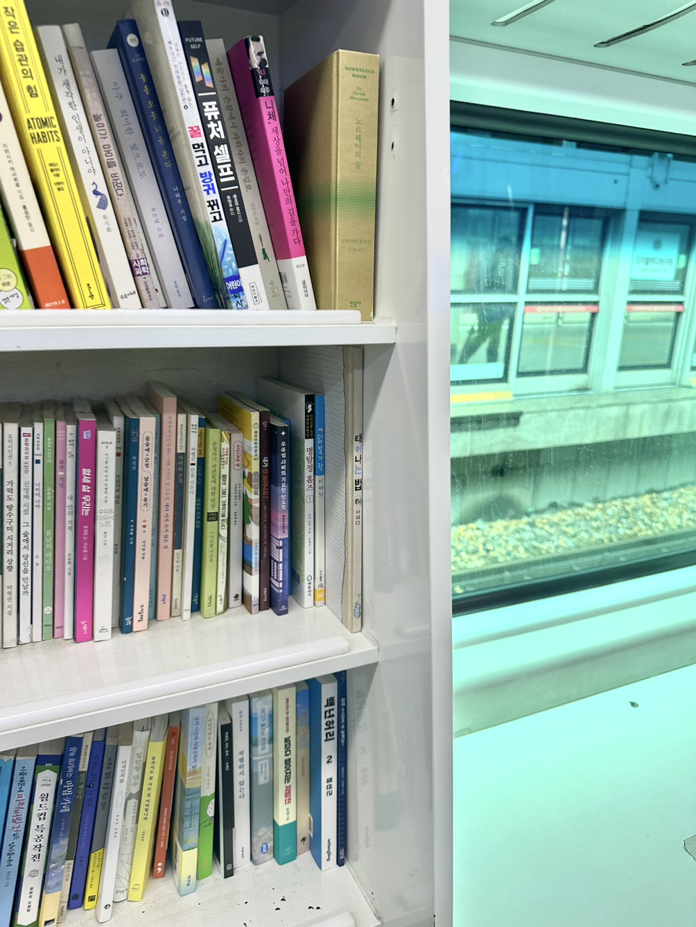 원래 같았으면 앉을자리부터 찾았겠지만, 그보다 책들이 눈에 띄었다. 지하철에 웬 책들이 가지런히 정리돼있나 싶었는데, 자세히 들여다보니 파주시에서 기획한 것으로 독서 권장을 위해 열차 안에 작은 도서관을 마련한 것이었다.