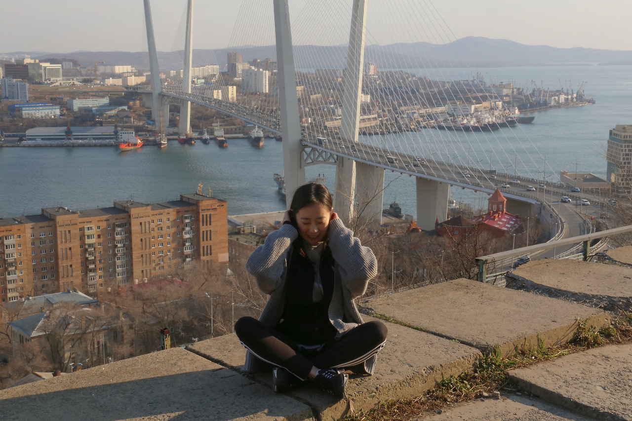 블라디보스토크의 하이라이트! 독수리 전망대이다. 혼자 왔으면 재미없었을 것도 같은데 해영과 함께 와서 그런지 기분이 무지 좋았다. 서로 인생사진 찍어주겠다며 연신 카메라 셔터를 눌러댔고 함께 등을 맞대거나 마주보는 등 포즈를 취하며 사진을 남겼다. 바람이 세게 부는 바람에 만원짜리 지폐 한 장이 날아가버렸지만.. 그래도 마냥 좋았다.