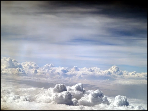 비행기에서 아래로 구름이 하얀 카펫처럼 펼쳐진 모습을 볼 때는 꿈을 꾸는 것 같다.