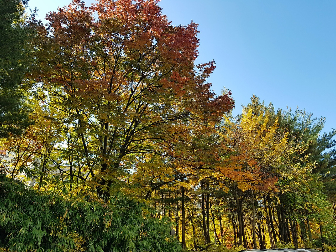 2층 높이까지 자란 나무가 바로 보이는데 막 가을 단풍이 물들기 시작한 시점이었다.