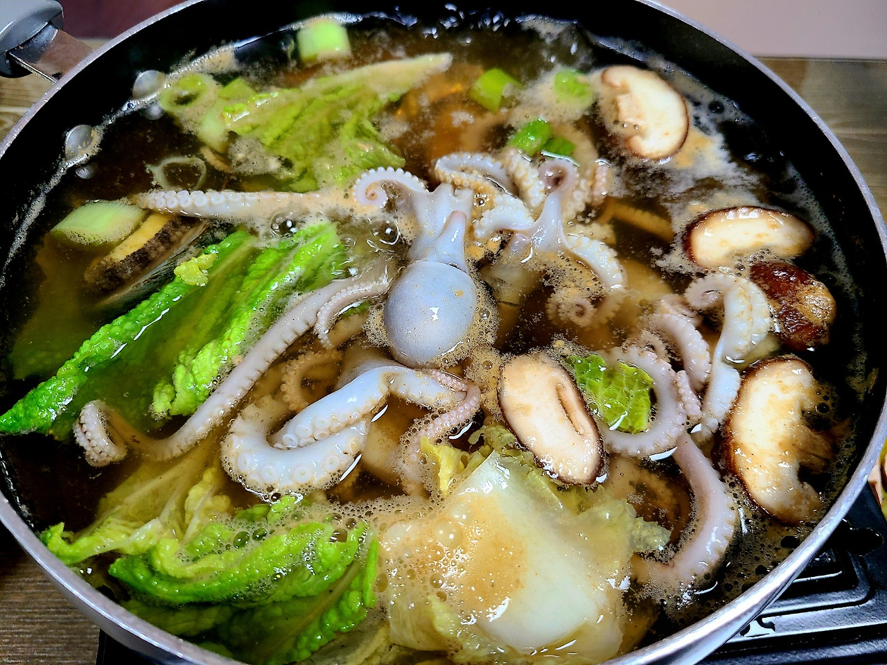 그리고 거기에 샤부샤부용 고기를 넣어서 채소와 함께 건져 먹고 나니 멸치 육수를 베이스로 한 전복, 낙지, 소고기 진국이 되었다.