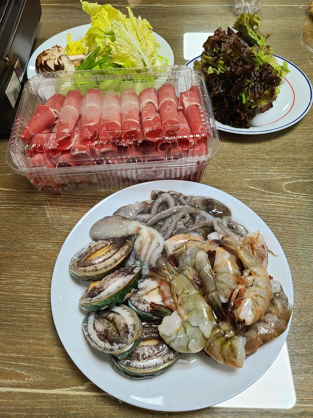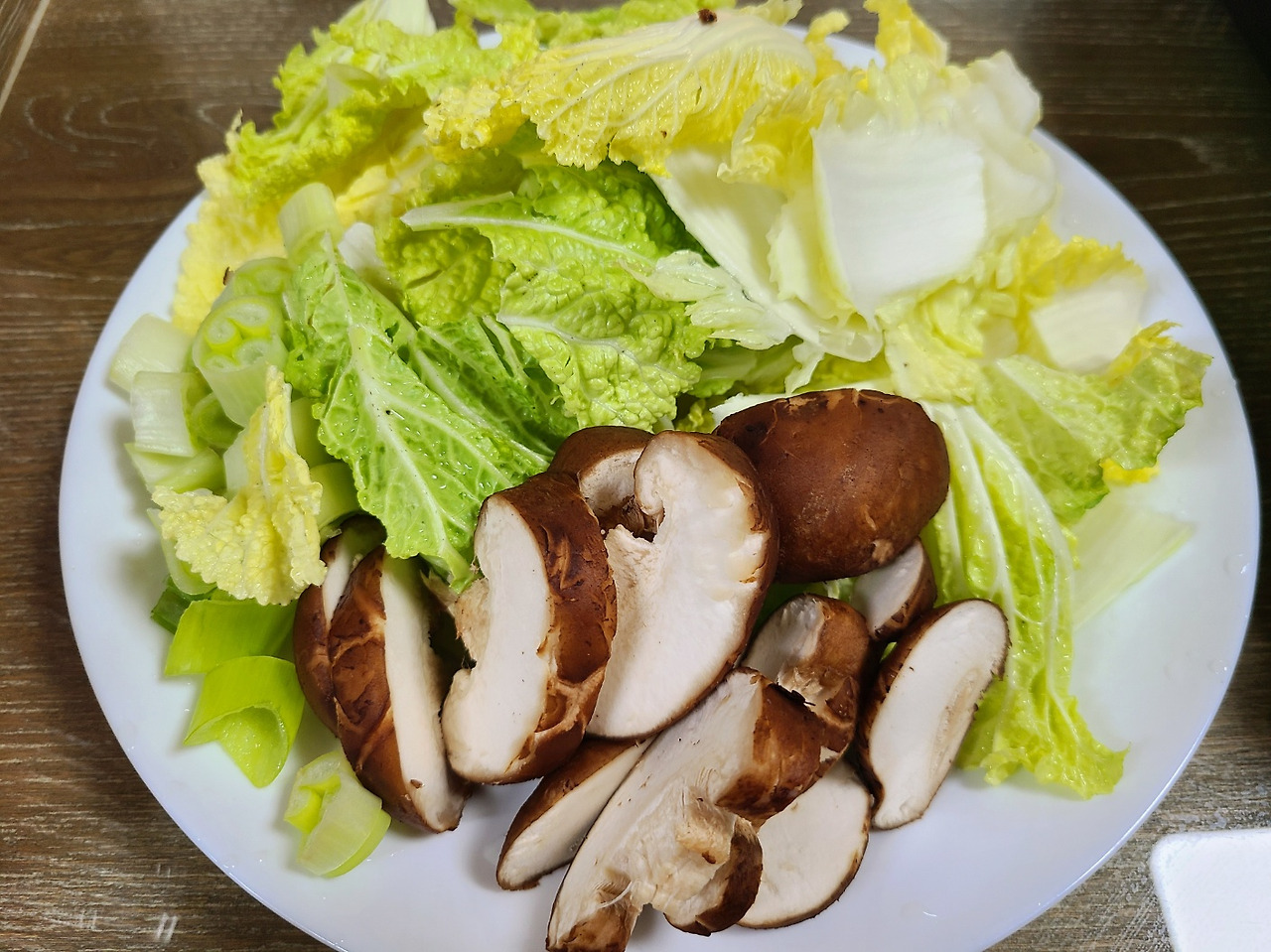 그리고 샤부샤부용 소고기와 각종 채소도 준비하였다.