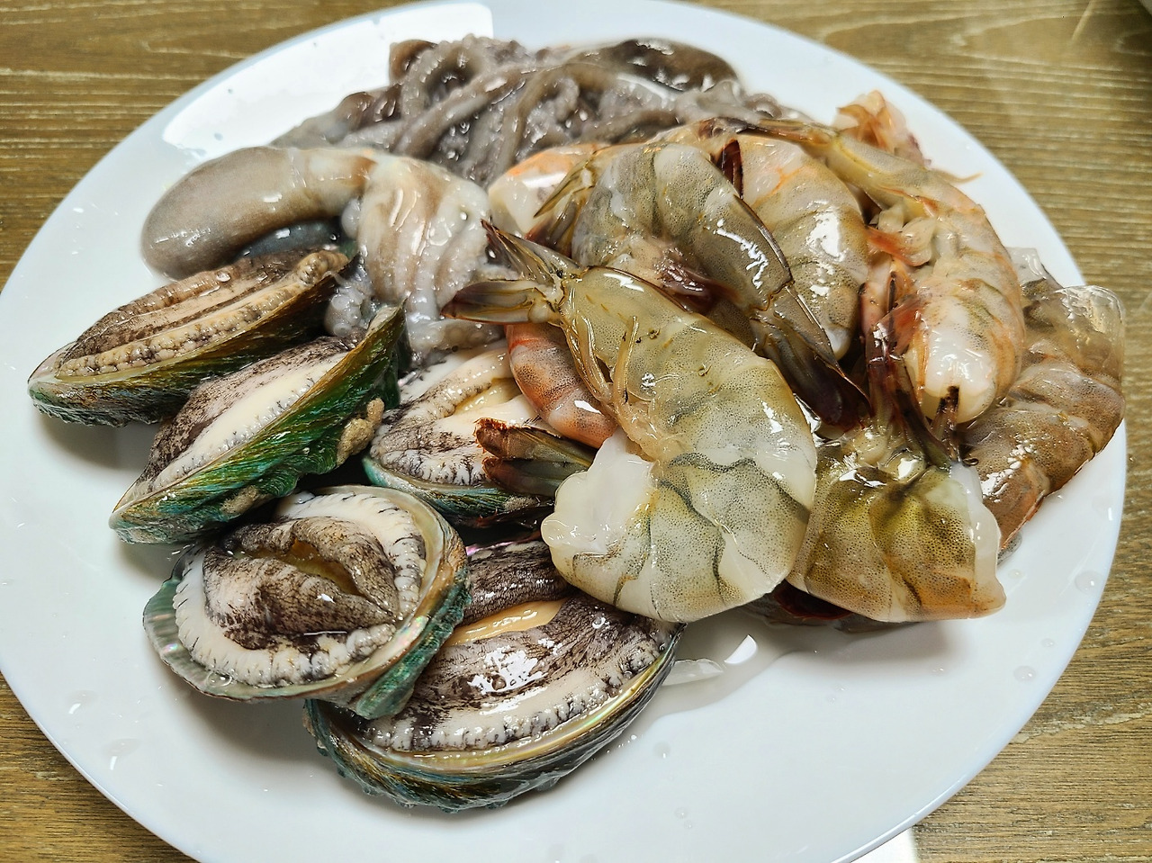 이리하여 우리 가족은 아들이 주문한 뻘낙지를 맛있게 먹기 위해 각종 채소와 전복, 낙지, 소고기, 새우가 어우러진 깊은 맛의 해물 칼국수를 먹게 되었다.