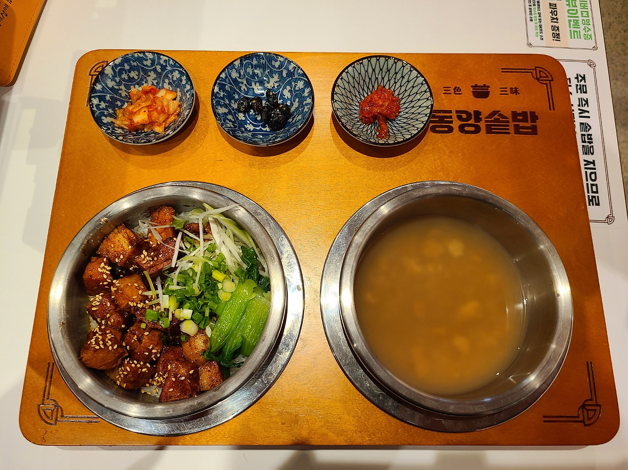 며칠 전에 서점에 갈 일이 있어 근처 식당 중에 새로 생긴 솥밥집이 있어서 그곳에서 '동파육 솥밥'을 먹었는데 취향저격의 메뉴였다.