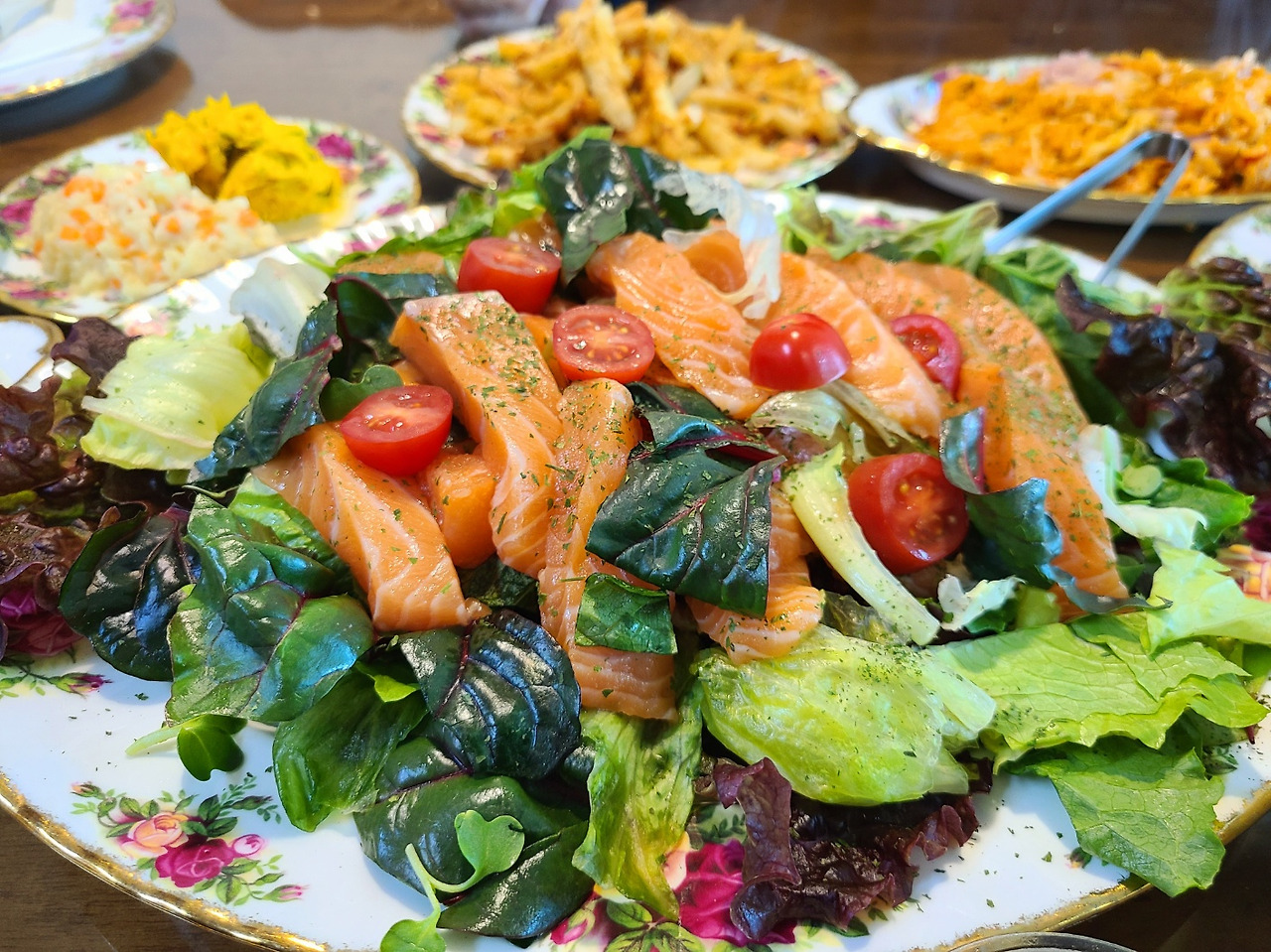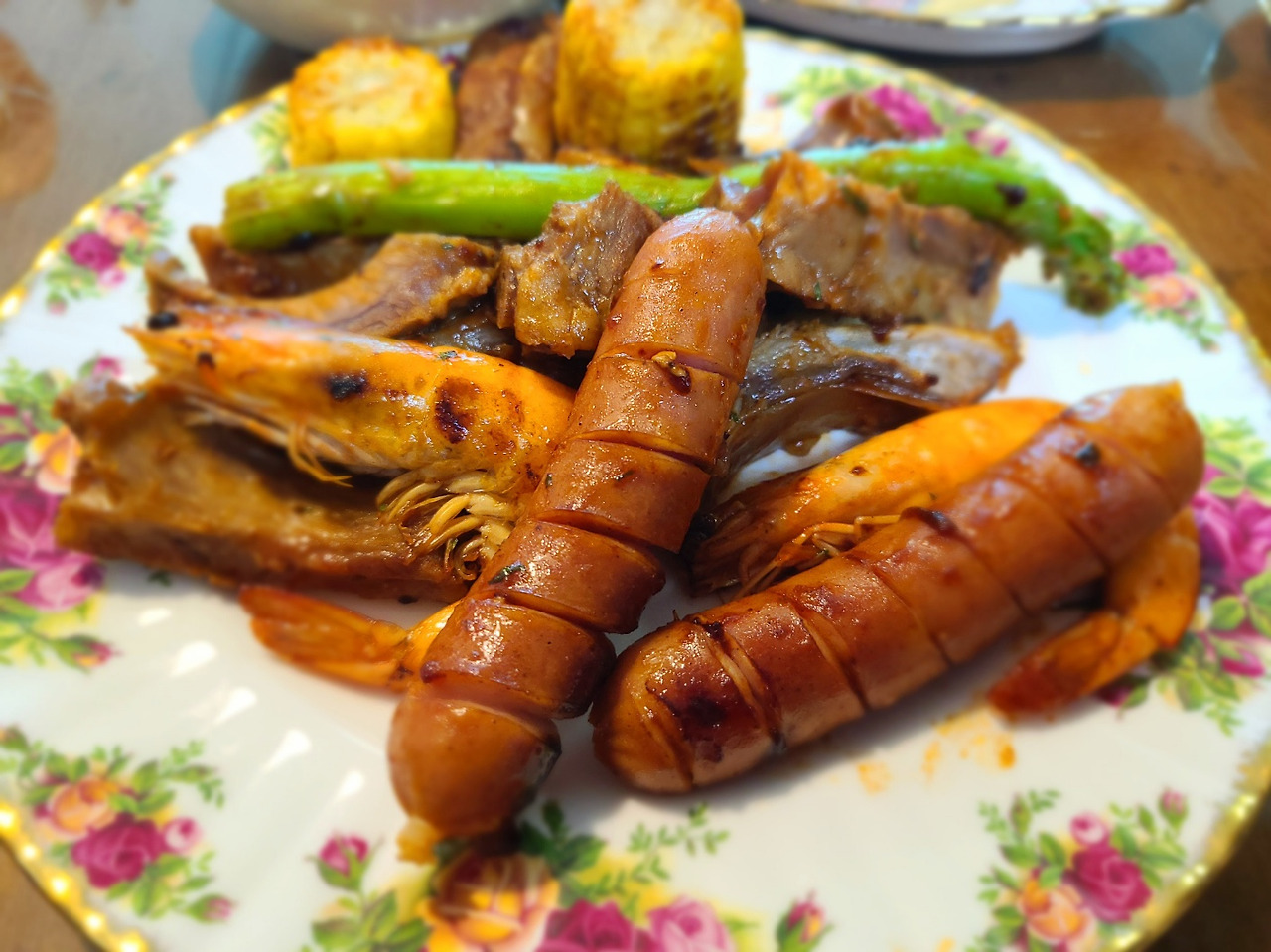 식사는 어머니가 준비하신 돼지갈비찜과 새우구이, 스테이크 그리고 아내가 준비한 연어 샐러드로 풍성했다.