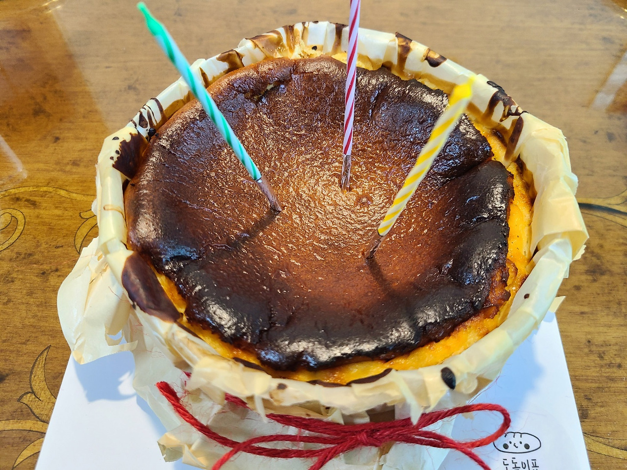 식사 후에는 내가 준비한 치즈 케이크와 선물로 드린 커피 머신으로 내린 커피로 후식을 함께 했다.