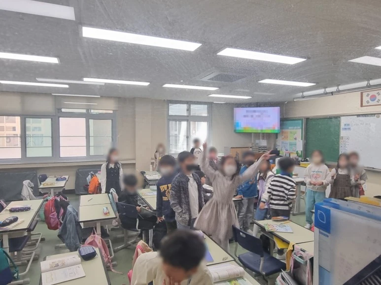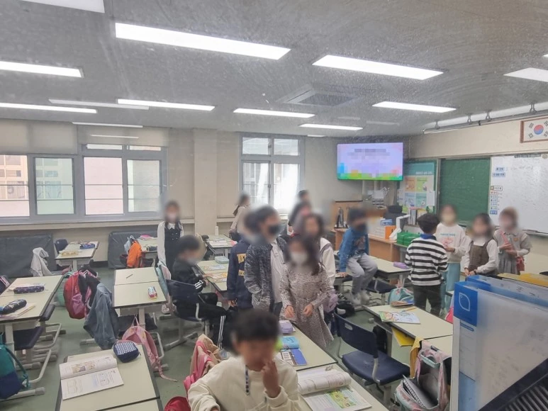 집중을 못하는 친구들도 몇몇 있었지만, 딸 아이는 수업 시간 내내 집중하는 모습을 보였다. 그렇게 40여분 가량 수업시간이 지나갔고, 선생님의 마무리 설명과 함께 공개수업이 끝났다.