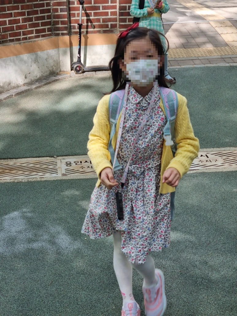 쉬는 시간에 맞춰 밖으로 나와 엄마를 끌어안은 딸 아이. 와이프와 함께 집중해서 수업 잘 듣는다고 칭찬을 해줬다. 딸 아이와 인사를 한 후 밖에서 한참을 딸 아이를 본 후 집으로 향했다.