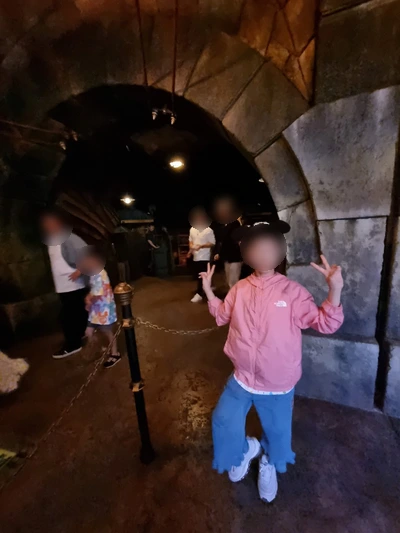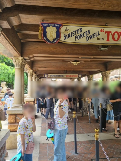 먼 길을 걸어 '타워오브테러' 입구에 도착했다. 고풍스러운 건물 안에 놀이기구가 있는건데, 인기가 많아서 그런지 대기시간이 엄청 길었다.