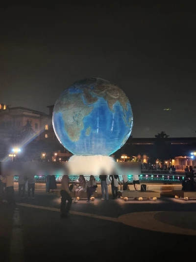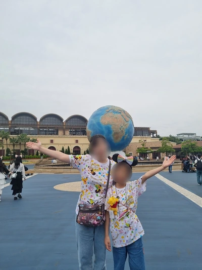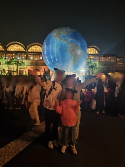 점심을 안 먹고 논 탓에 늦은 점심을 호텔에서 먹기로 하고 입구 지구본에서 사진을 찍은 후 '도쿄 디즈니씨'를 나왔다.