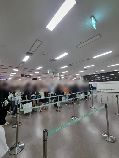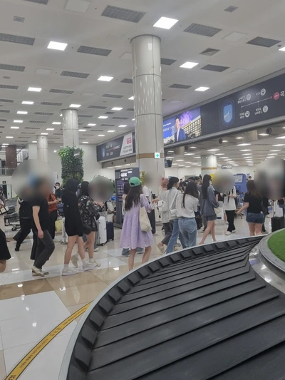 공항에 도착해 짐을 찾고 와이프와 딸 아이가 화장실에 간다고 해 대기하고 있는데, 주위에서 환호성이 들렸다.