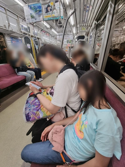 '산리오 퓨로랜드'에서의 아쉬운 시간을 마무리하고, 공항을 가기 위해 지하철역으로 향했다. 지하철을 타고 얼마 지나지 않아 운 좋게 앉을 수 있었는데, 딸 아이는 피곤했는지 이내 잠이 들었다.
