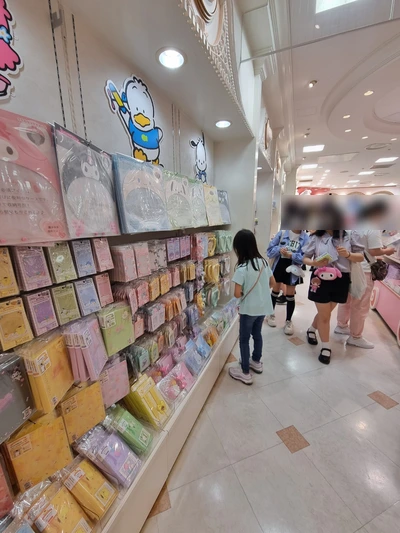 엄청난 크기에 정말로 다양한 굿즈들이 있었다. 딸 아이에게 '홍대 산리오카페'랑 여기랑 어디가 더 좋으냐고 물으니 이 곳이 10배 더 크고 굿즈도 많다고 답했다. 그러면서 바로 굿즈를 구경하느라 정신이 없었다.