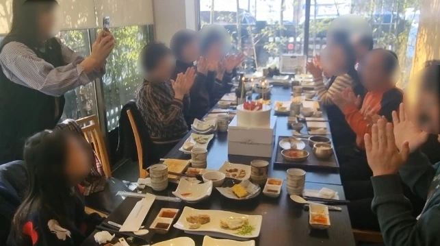 그렇게 음식을 먹으며 오랜만에 만난 친척들과 이야기를 나눈 후 마지막으로 케이크에 촛불을 켜고 생신 축하 노래를 부르며 이날의 어려운 자리를 마무리했다. 이 과정에서 딸 아이는 할머니들께 적지 않은 용돈을 받기도 했다.