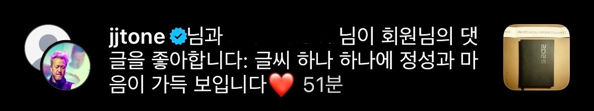 친애하는 김종진 선배님께서 직접 나의 댓글에 하트를 보내주셨다.