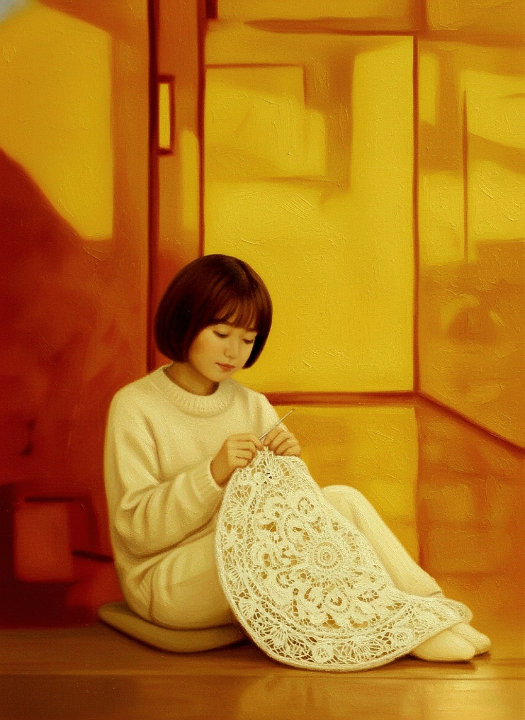 매운 공기 날카롭게 붙어선 커다란 창문 안 쪽, 햇살이 창무늬를 떨어뜨려 놓던 노란 방바닥의 그 따뜻함이 생각나서 불이 들지 않는 마루 바닥에다 작은 담요를 내어와 앉아 본다. 밝고 따뜻한 방 안에서 담요로 무릎을 덮고 앉았던 열다섯 살의 나는 애초의 그 예쁜 것에 대한 치기 어린 욕심 외에 섬세한 레이스의 작고 작은 땀들을 짜가는 동안에는 무슨 생각을 했을까. 창 밖 추위의 두려움을 창 밖 세상의 실정만큼 알지 못하던 둥지 안의 새끼 새와도 같던 그때 그 나이에. 물론 그 때라고 삶이 동화처럼 매끈하게 이쁘기만 했으랴만.
