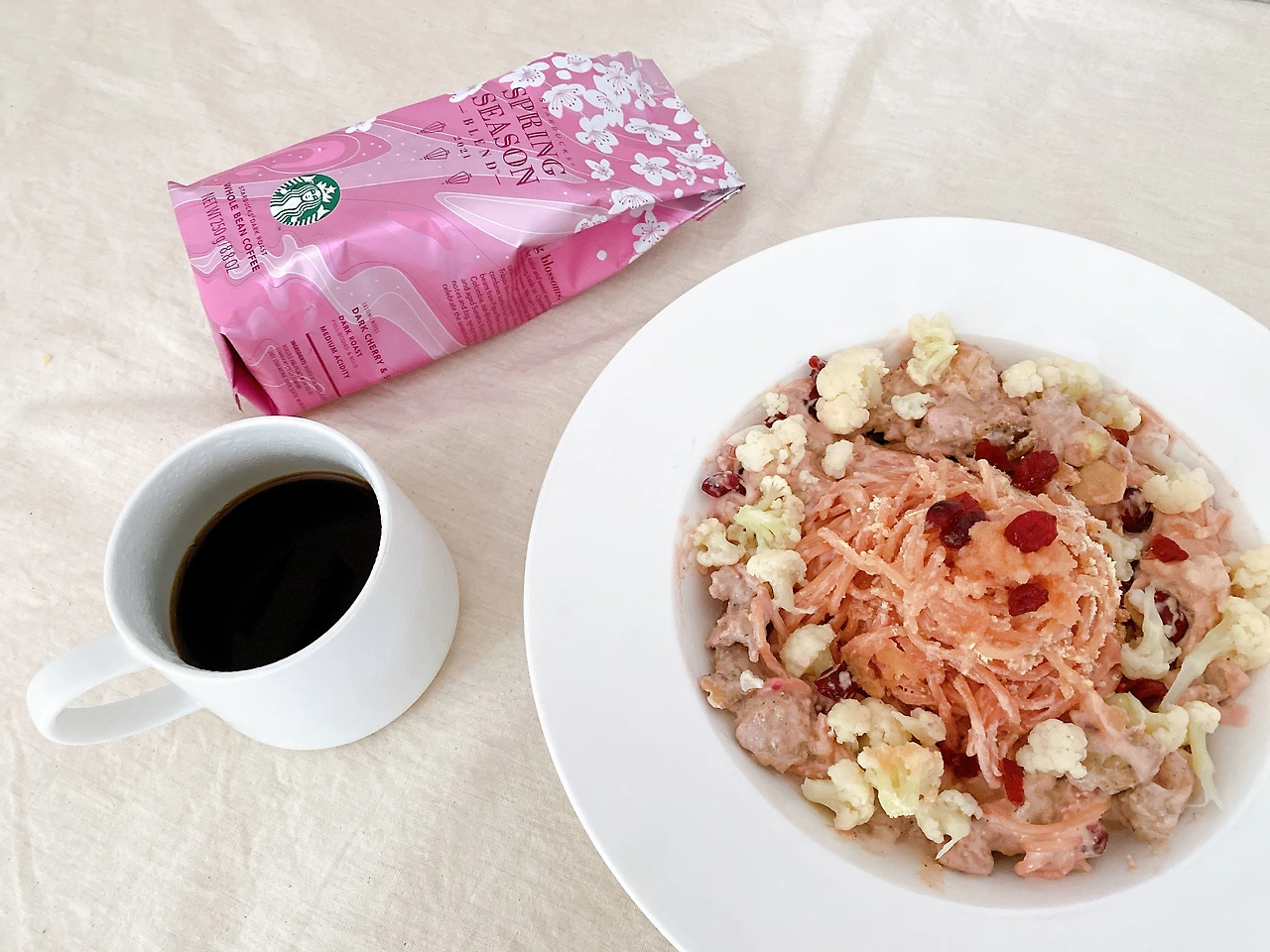 소화불량으로 자주 마시지도 못하는 커피지만 그날따라 집에서도 설레는 봄을 느끼고 싶어 손이 갔습니다. 더불어 그런 봄을 담은 요리와 함께라면 그런 설렘이 더해지지 않을까 싶었습니다.