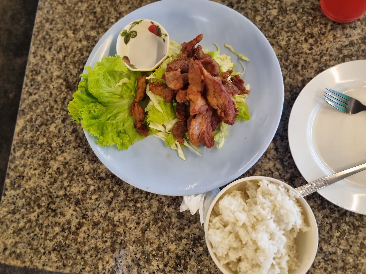 아이와 첫 현지식으로 부담 없을 것 같은 식당은 미리 봐두었다. 호텔에서 도보 10분 거리. 햇빛 쨍쨍하고 후덥지근한 도심을 걸으니 동남아라는 게 실감 났다.
