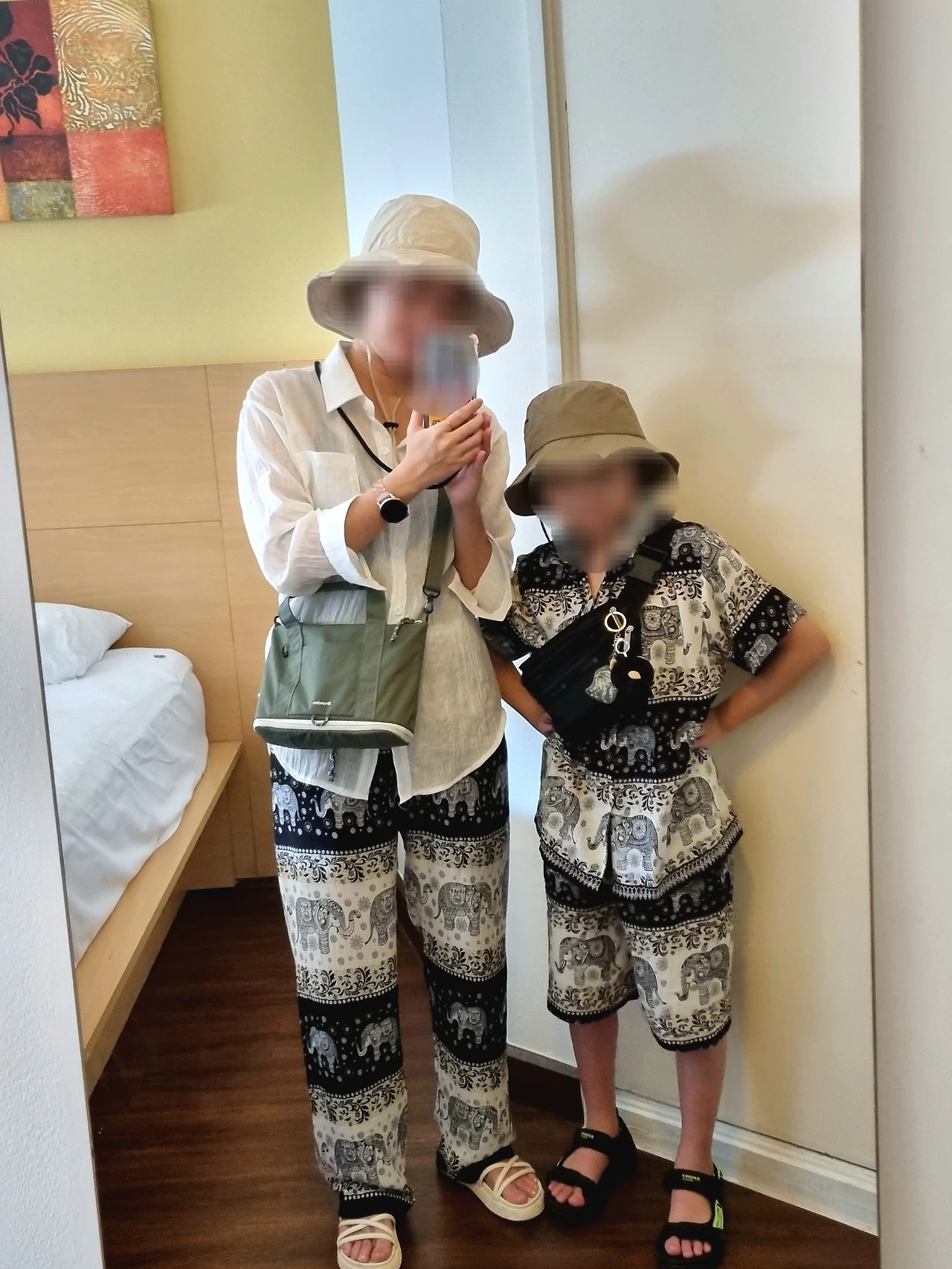 어제 야시장에서 산 코끼리옷 커플룩을 맞춰 입고 착장샷을 찍으니 여행자 느낌이 물씬 났다.