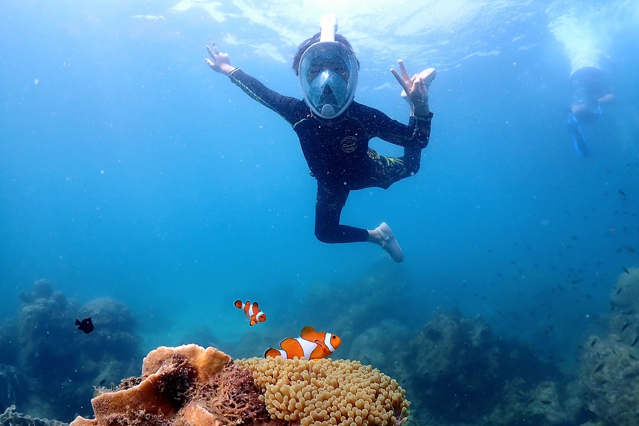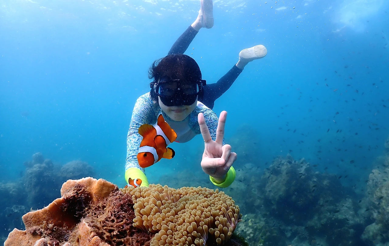 애니메이션 <니모를 찾아서>에 나오는 물고기 흰동가리가 사는 산호지대를 구경하고 근처에서 스노클링을 하는 코스. 우리 팀만 가는 건 아니고 다른 사람들과 모여서 함께 움직이는 조인투어다.