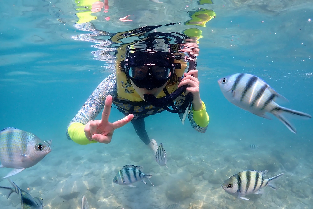 첫 번째 포인트에서는 보트 위에서 사진만 찍고 두 번째 포인트로 이동해 스노클링을 시작했다. 신비한 애메랄드빛은 아니었지만 물이 어찌나 맑은지 자갈 굴러가는 게 다 보일 정도였다.