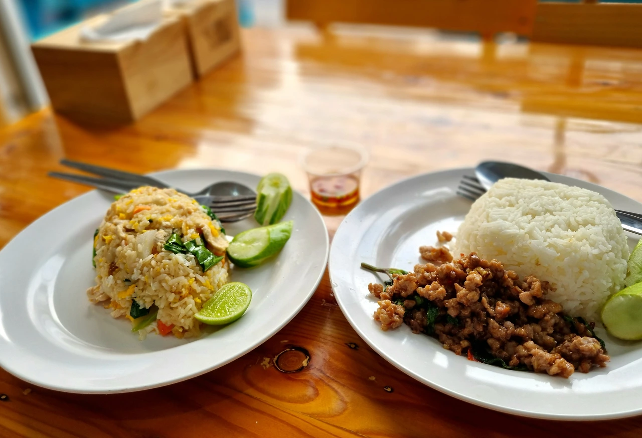 오늘은 투어를 가야 하기 때문에 든든히 먹어두어야 한다. 아들은 치킨볶음밥, 나는 팟카파오무쌉. '팟카파오무쌉'은 돼지고기바질볶음과 밥이 나오는, 태국에서 대중적인 사랑을 받고 있는 메뉴다.