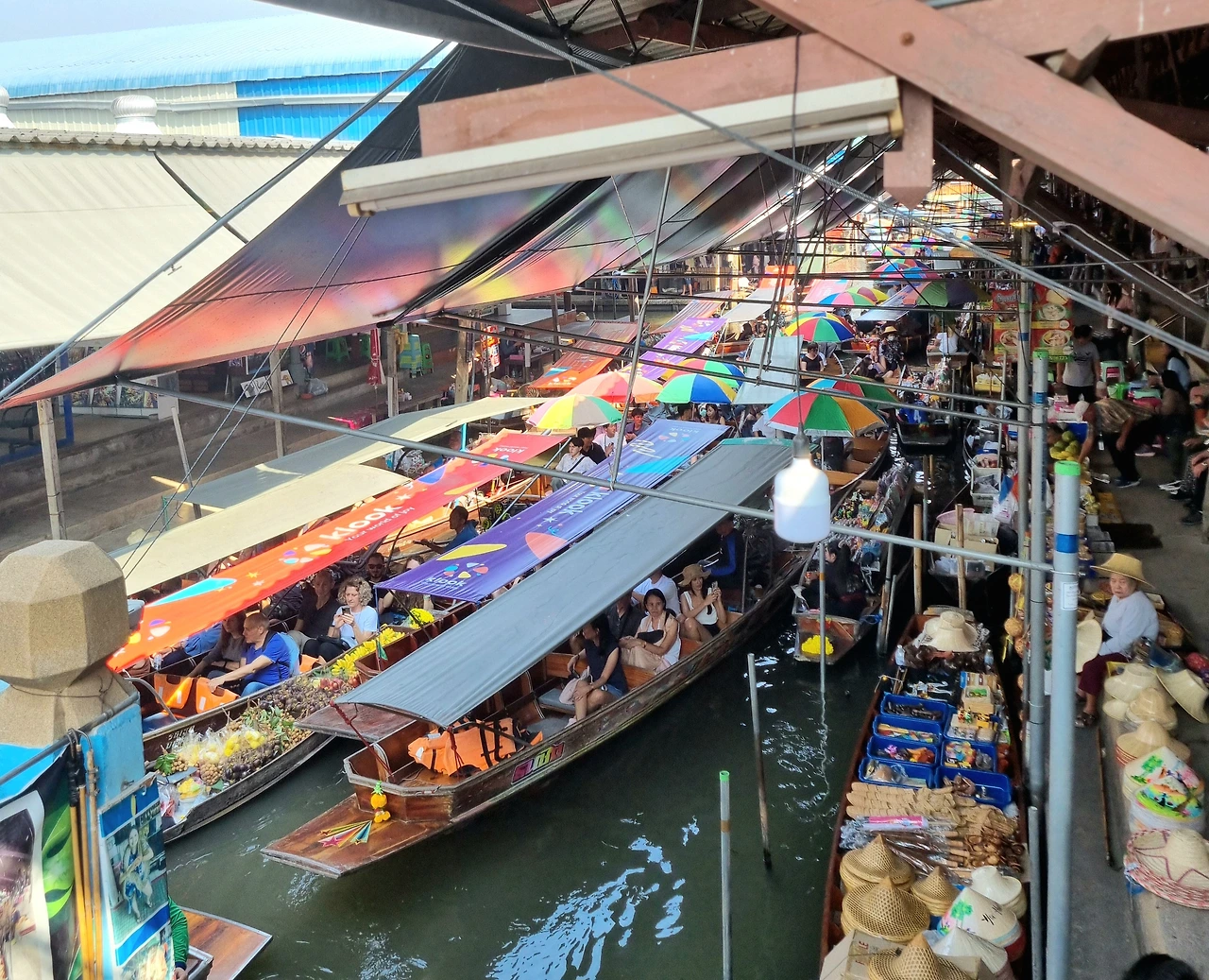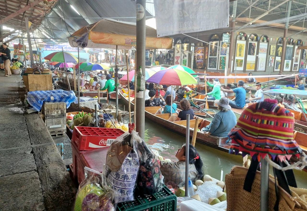 이럴 걸 충분히 예상하고도 여기까지 온 이유는, 아이에게 한국엔 없는 새로운 걸 보여주고 싶어서였다. 비록 현재는 이렇게나 상품화되어 버렸지만, 원래 수상시장이라는 게 왜 생겨나게 된 건지, 왜 옛사람들이 강줄기를 따라서 문화를 형성했는지 같은 이야기를 직접 보면서 나누고 싶었다.