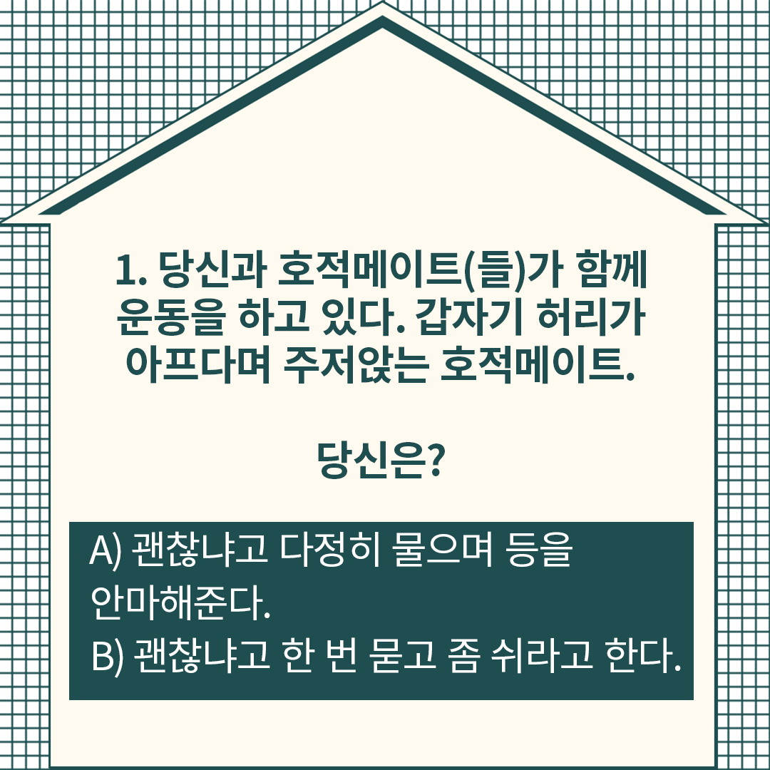 간단하게 세 질문에 답을 하면 나와 내 호적메이트에 해당하는 유형을 찾을 수 있는데요,
