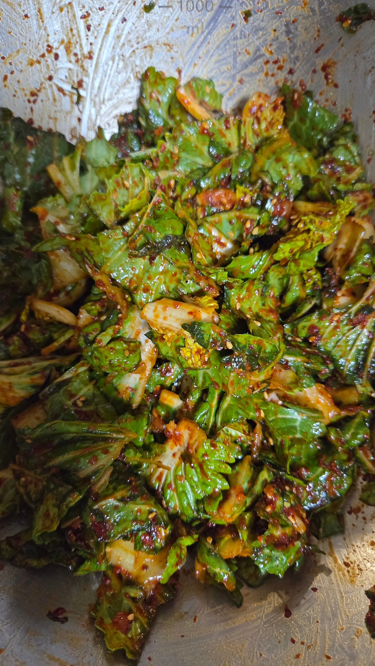 양념장을 골고루 섞은 후 물기를 빼둔 봄동을 넣어서 양념장에 골고루 버무려준다.