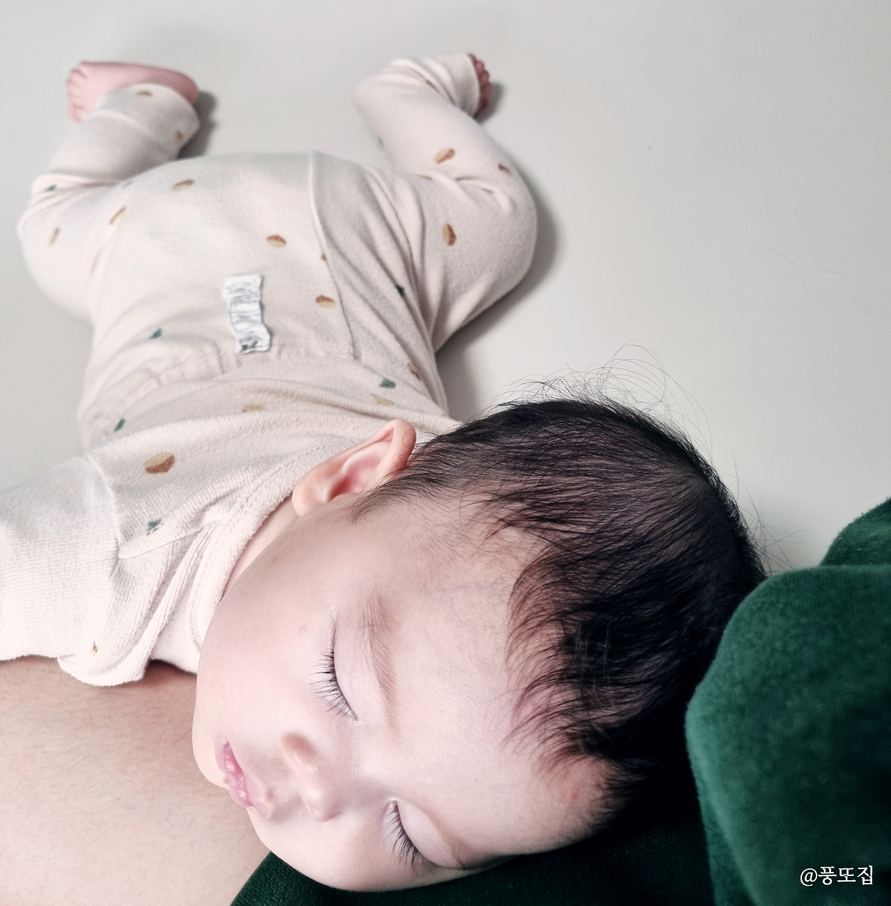 폭- 엄마 다리에 묻는다.