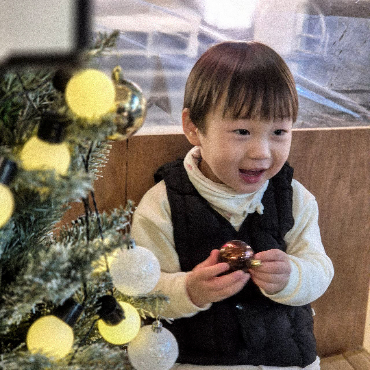 웃음이 배시시 피어오르면서도 작은 손은 엄마 손을 놓을 생각이 없다.