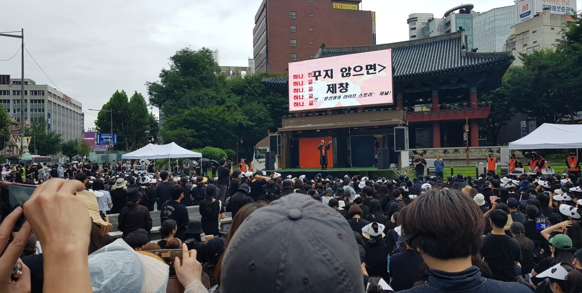 소리없는 슬픔이 번지며 눈물이 흐른다. 24살의 꽃다운 나이에 세상을 등진 후배의 절망, 사랑하는 제자가 무서워 학교를 갈 수 없다는 동료의 두려움을 너무나 잘 알기에 훌쩍임도 커져 갔다. 집회 종료 안내와 함께 우산을 씌워준 뒷자리 선생님과 옆자리 대구 선생님께 조심히 귀가하시라 인사를 하다가 또 왈칵했다. 눈물범벅인 선생님들의 모습에 가슴이 아팠다.