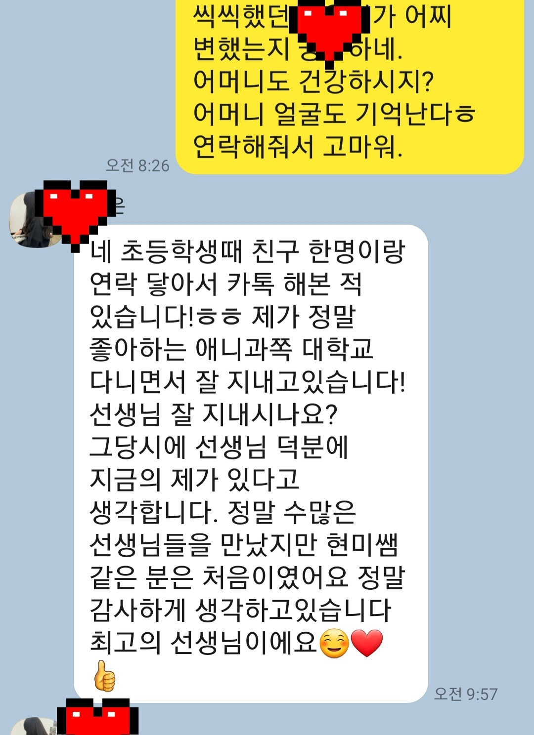 대학생 정은이도 선생님이 그립고 감사하다는 내용의 문자를 보냈다.